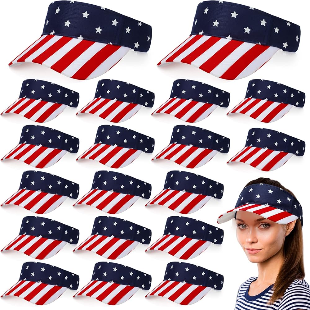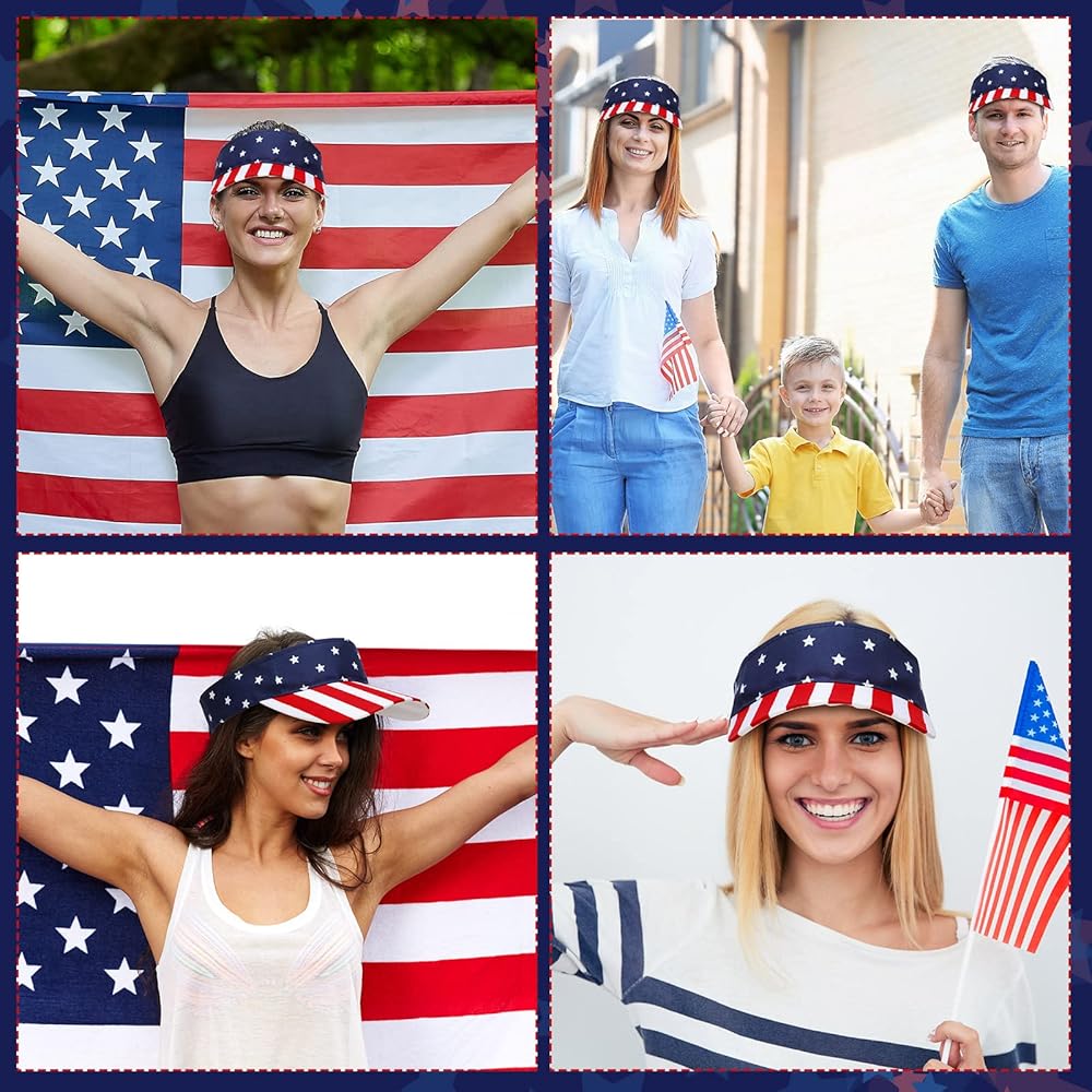 24 قطعة من القبعات الوطنية للنساء بالجملة قبعات الرابع من يوليو، قبعات العلم الأمريكي، قبعة واقية من الشمس، قبعات عيد الاستقلال، خطوط ونجوم، قناع من نسيج قطني طويل لأنشطة يوم الذكرى للاحتفال بالاستقلال