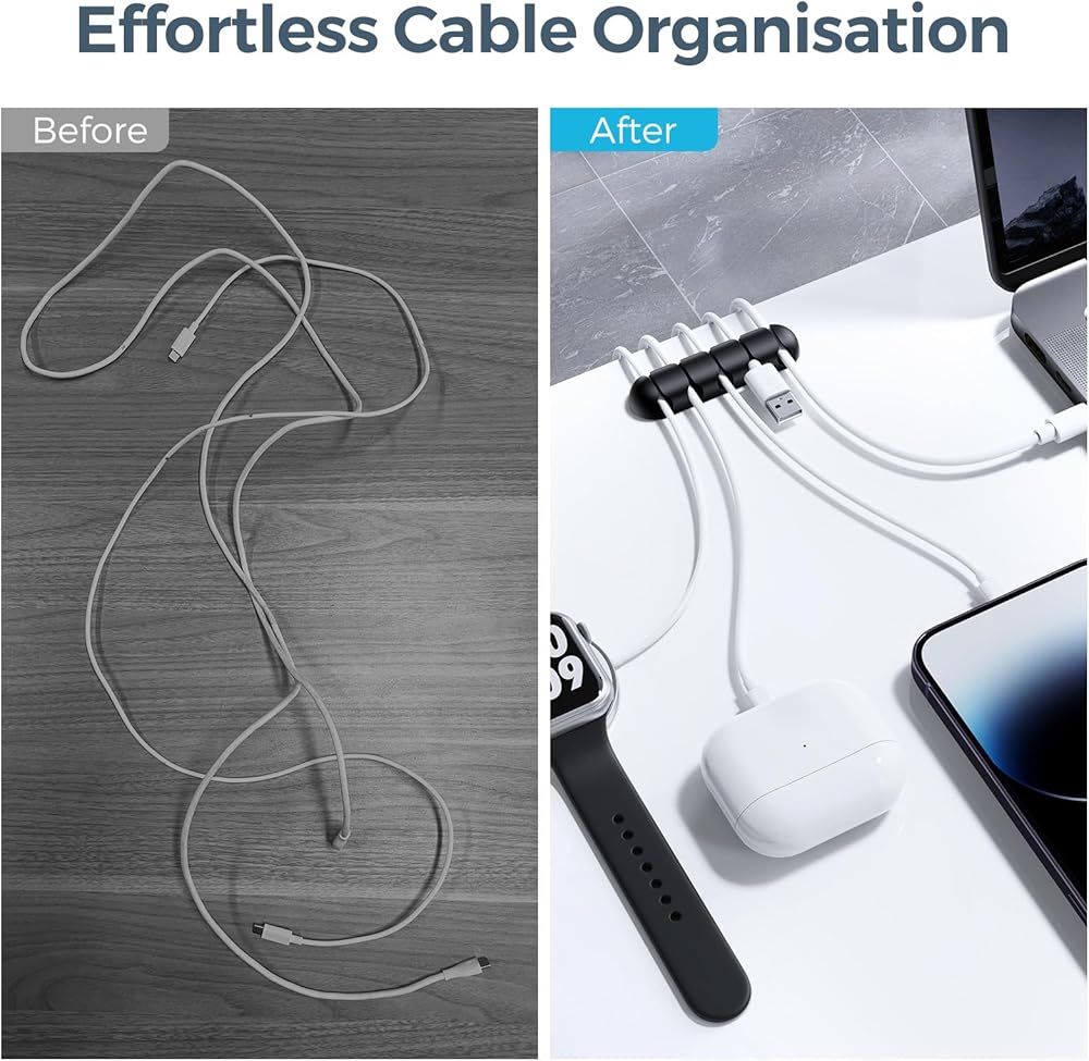 【مجموعة مكونة من 5 قطع】تتضمن 5 حوامل كابلات بأحجام مختلفة من فتحة واحدة إلى خمس فتحات، تحافظ على أسلاكك في مكانها لتجنب التشابك وفي متناول اليد، بينما بالكاد ستلاحظ المنظم الصغير.