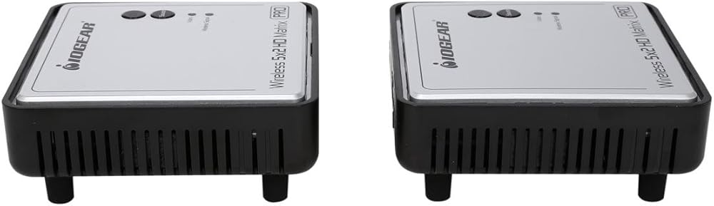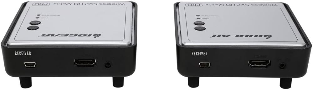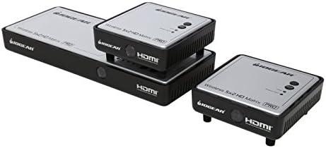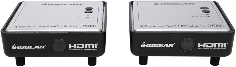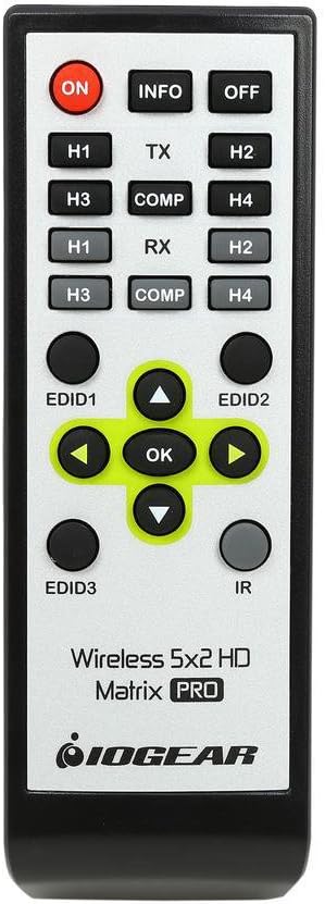 The GWHDMS52MBK2 is a pre-configured Kit which includes one (1) additional wireless HD receiver (Part# GWHDRX01) for support of two (2) wireless locations. IOGEAR's Long Range Wireless 5 x 2 HD Matrix PRO with Multicast is the first to send uncompressed HD 1080p up to an astonishing 200 feet, including the ability of multicasting up to a total of 4 wireless receivers! The Wireless 5x2 HDMI Matrix PRO is setting a new standard in wireless connectivity, flexibility, convenience, and decor. The wireless matrix feature is the biggest breakthrough in wireless A/V solutions today. This means you can watch cable TV in the living room while the bedroom independently selects a Blu-ray movie to watch wirelessly at the same time. It's capable of streaming uncompressed Full HD 1080p with support for 3D content and digital audio up to 200 feet away within the home or desired set up. Expand beyond one wireless display to multiple wireless displays with Multicast capabilities. Simply add up to 3 additional wireless receivers broadcasting to a total of 4 wireless receivers from the same HD video source. Additional wireless receivers sold separately. Visit the GWHDRX01 product page for more information. Our newly designed discrete remote gives installers and prosumers the flexibility to consolidate functions with professional A/V systems. Supports IR pass-through - Enables wireless control of your source devices and helps consolidate your HD A/V electronics, such as a DVD / Blu-ray players, DVR / Cable boxes, Game consoles and computers to design your own custom entertainment space. The default EDID resolution setting is 720p, to ensure HD video on every initial set up. The PRO unit provides three (3) EDID management modes for the best installation every time. This gives flexibility and power for any install or end customer's desired set up.Frequency: 4.9 ~ 5.9GHz (Includes non-DFS and DFS Frequency Bands)
