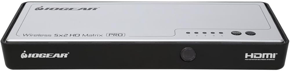 IOGEAR HDMI Wireless 5x2 Matrix Switch مع جهاز استقبال إضافي - فيديو عالي الدقة 1080 بكسل يصل إلى 200 قدم - في وقت واحد حتى 5 أجهزة تلفزيون عالية الدقة - صوت رقمي 5.1 قناة - HDCP 2.0 - التوصيل والتشغيل - GWHDMS52MBK2