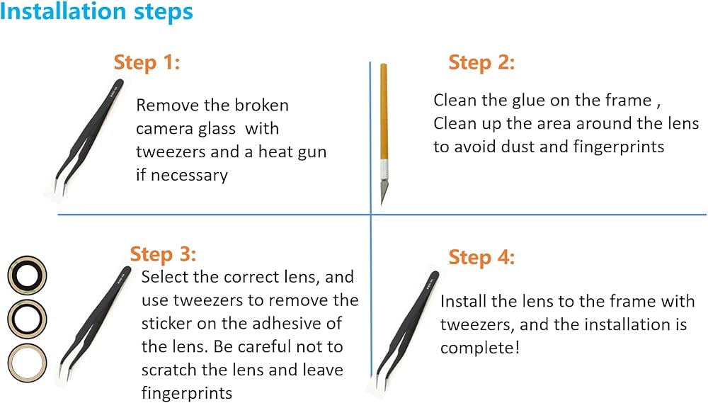 4-Please becareful when you replace the old rear cover and deal with the broken glass in proper way.there don't have the instructions in the package.If you are the first time to do this job,we suggest you check the video in Youtube