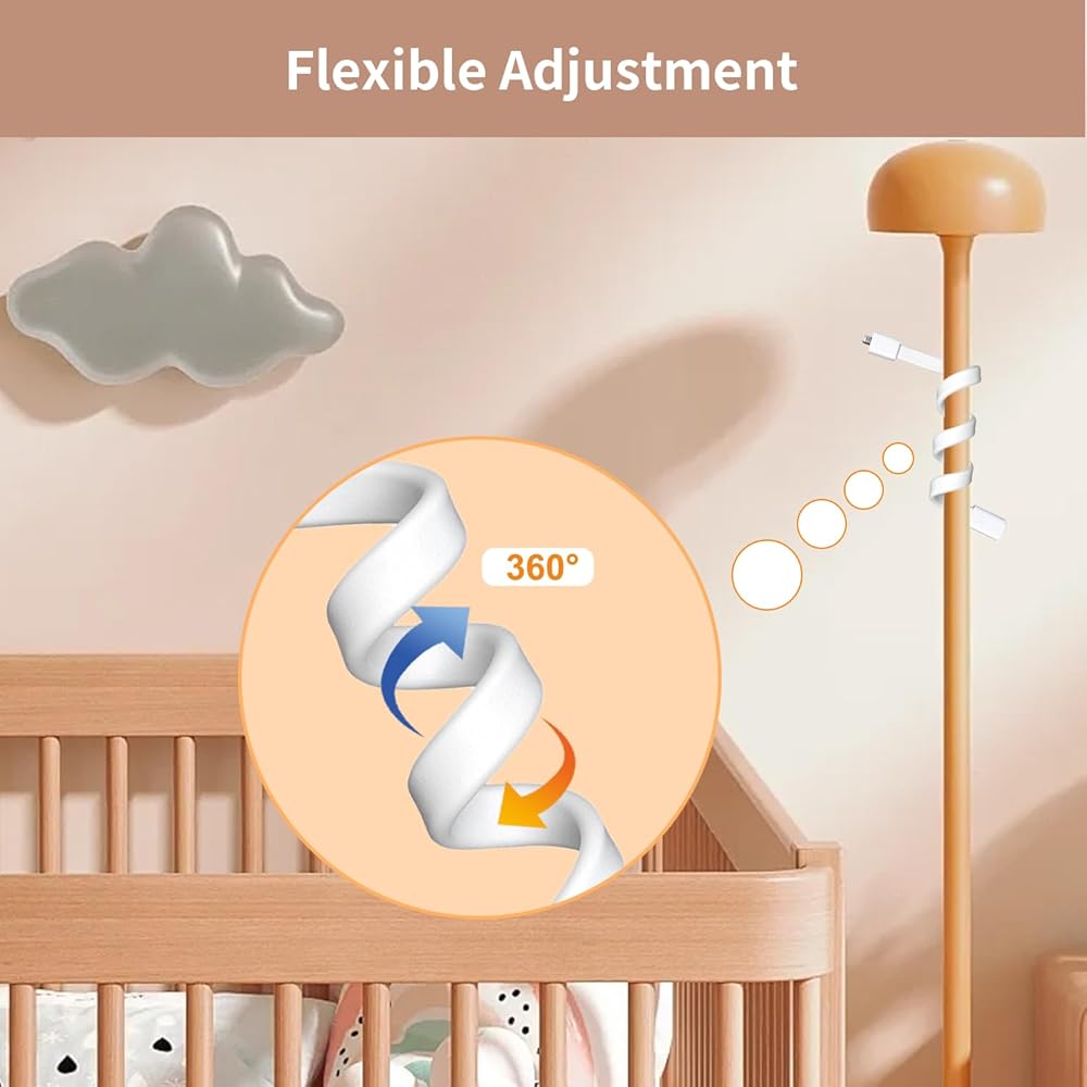 【Humanized Usage Methods】: Attaches to crib cot, chairs, or other furniture everything else that can be wrapped. Surround the baby with love. Customize adjustments and bends according to the angle and height you want.Unlike permanently fixed baby monitor racks or wall mounted brackets, our can be folded into any shapeand can also be restored to its original shape.