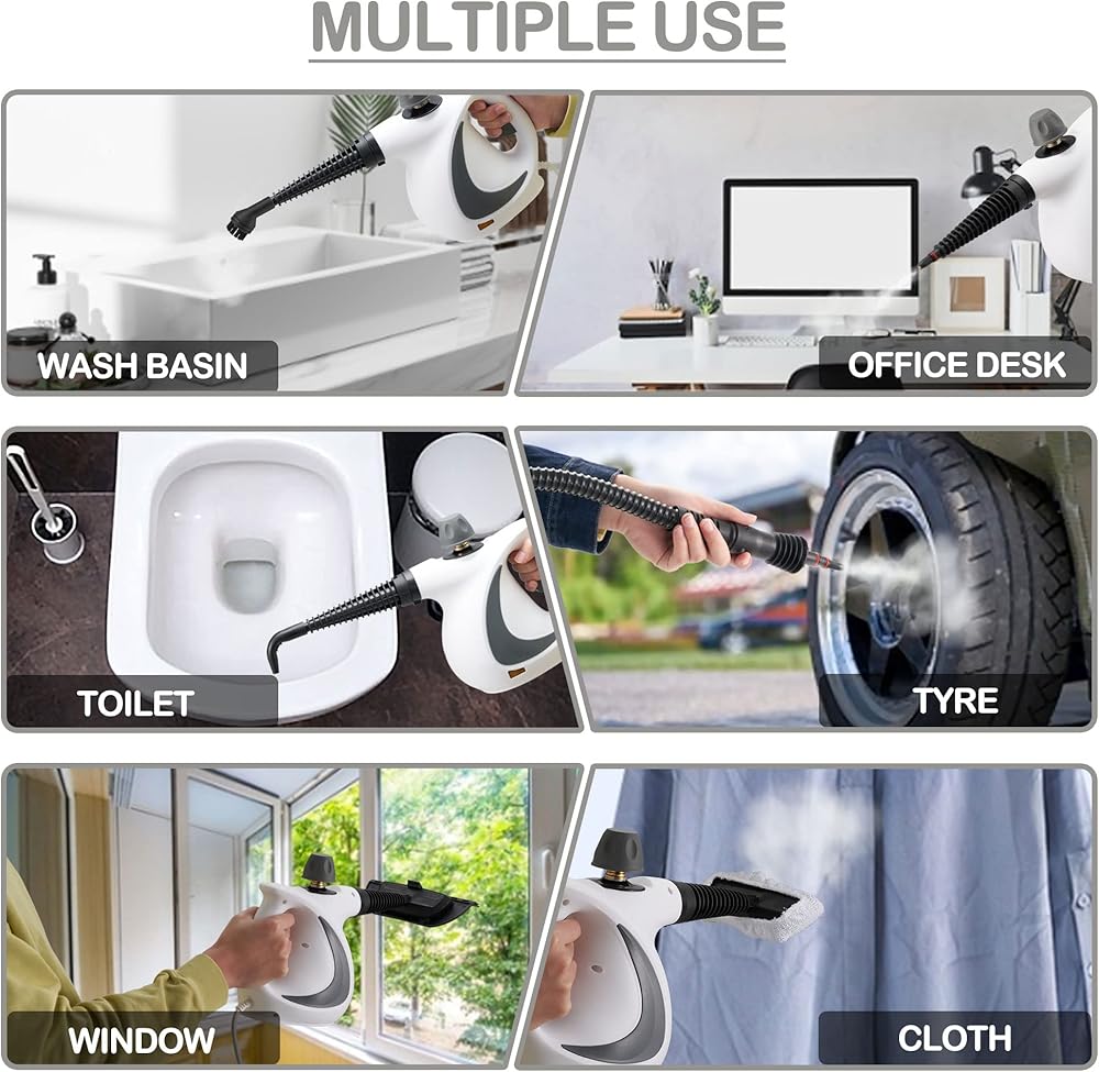 منظف بالبخار متعدد الوظائف - يستخدم منظف البخار المحمول الخاص بنا لتنظيف الأوساخ والبقع على الأرض والسيارة والسجاد والنوافذ والملابس. مع تقنية الدفع الحصرية والبخار عالي الضغط ودرجة الحرارة العالية 169 درجة مئوية (350 درجة فهرنهايت)، يمكن أيضًا استخدام جهاز البخار لإزالة الغبار. منتج صحي وصديق للبيئة.