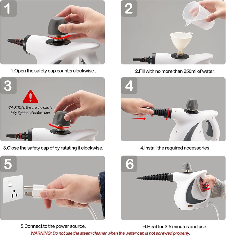 سهل الاستخدام - قم بتشغيل مصدر الطاقة، يبدأ جهاز البخار على الفور عملية التسخين. مع جسم الضوء (2.8 باوند)، وسلك طاقة طويل للغاية (9.25 قدم) وملحقات التنظيف الكاملة، يمكن استخدام منظف البخار المحمول بحرية وعلى نطاق واسع. تحكم تلقائي في التسخين، قادر على توليد البخار بشكل مستمر والتنظيف المستمر مريح.