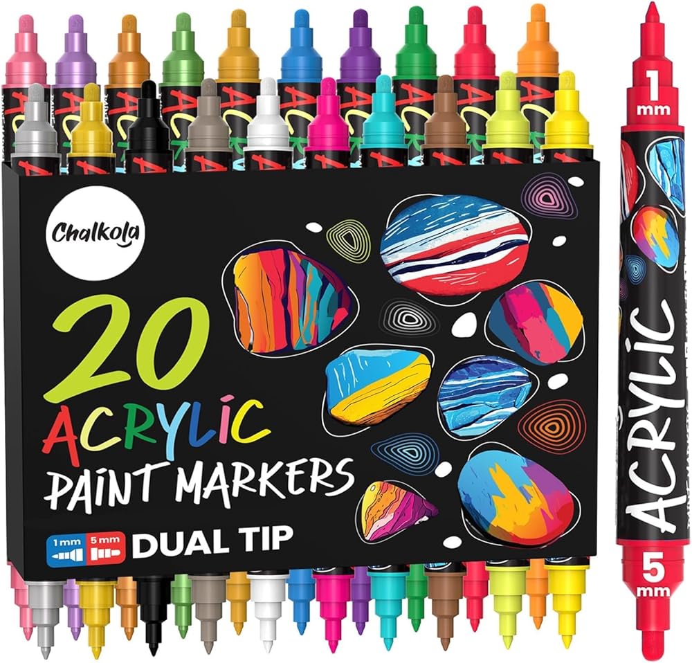 أقلام أكريليك غير سامة وتدوم طويلاً - بينما تتشقق أقلام الأكريليك الأخرى تحت الاستخدام الكثيف، فإن مجموعة أقلام تحديد الطلاء الأكريليك ذات الصبغة الغنية تبقى خالية من الاهتراء. تتوافق أقلام تشالكولا مع ASTM D-4236 وEN-71.