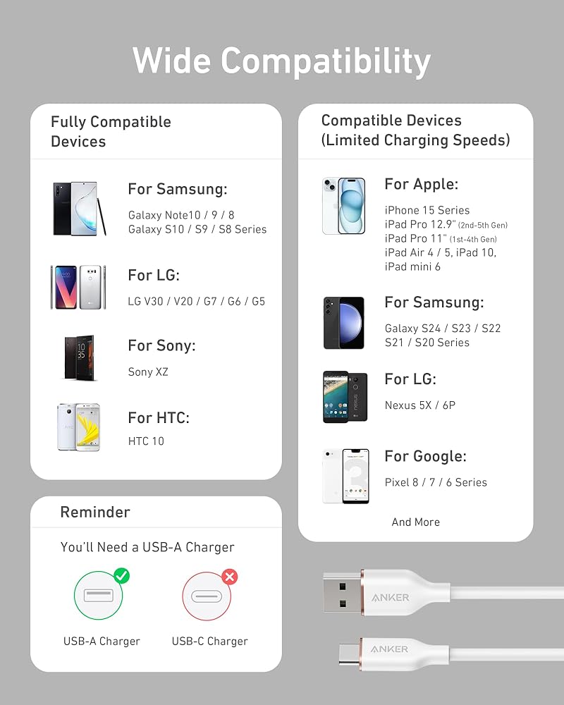 شحن آمن معتمد من USB-IF: استمتع براحة البال مع كابل USB-IF المعتمد، والذي تم اختباره بدقة للحصول على شحن آمن وخالي من التلف.