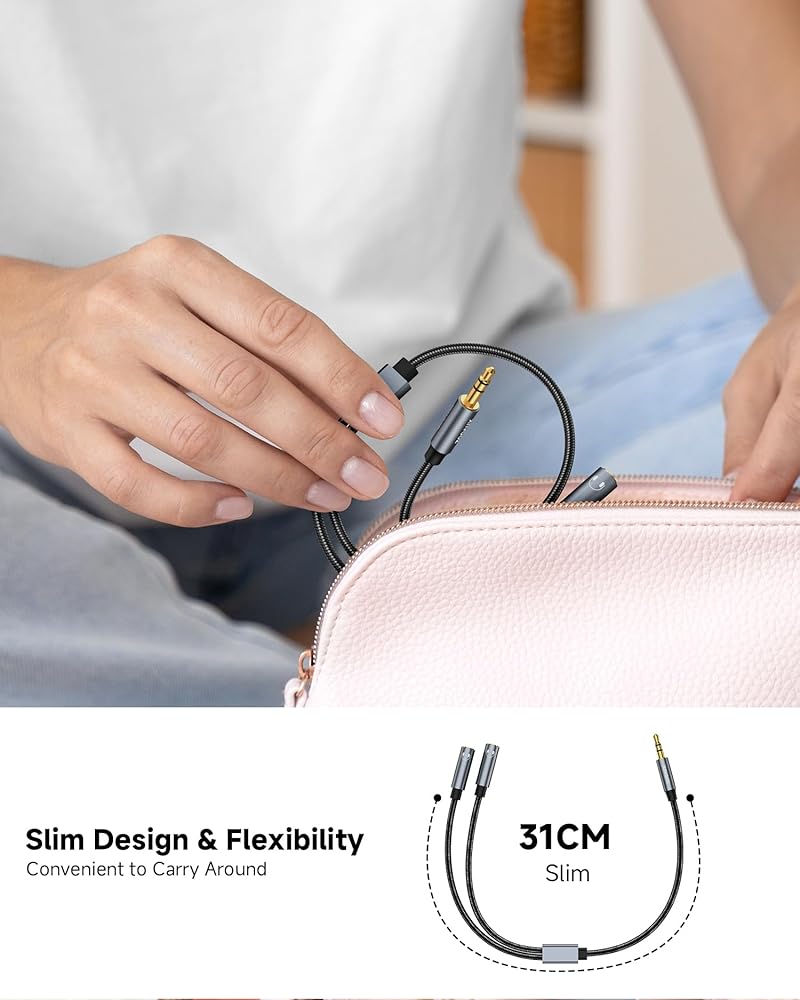 ZOOAUX مقسم سماعات الرأس 3.5 مم، مقسم صوت ستيريو Y (صوت هاي فاي)، 3.5 مم ذكر إلى منفذين 3.5 مم أنثى كابل تمديد مقسم سماعة الرأس متوافق مع iPhone iPad Tablet Tablet والمزيد