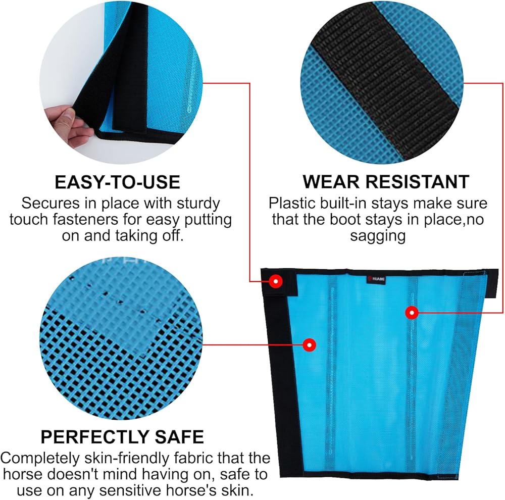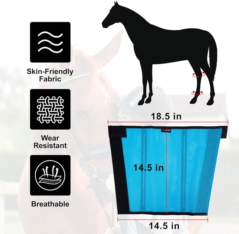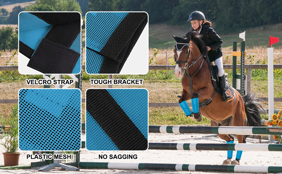 [مادة عالية الجودة] تضمن مادة PVC المتينة تدفق الهواء حول أرجل حصانك في الأيام الحارة دون تقييد تدفق الدم أو الحركة، مما يسمح بارتداء غير مقيد ومنع وجود الشوفان البري والنتوءات وتوفير الحماية من الأشعة فوق البنفسجية. هذا سيبقي حصانك مرتاحًا.