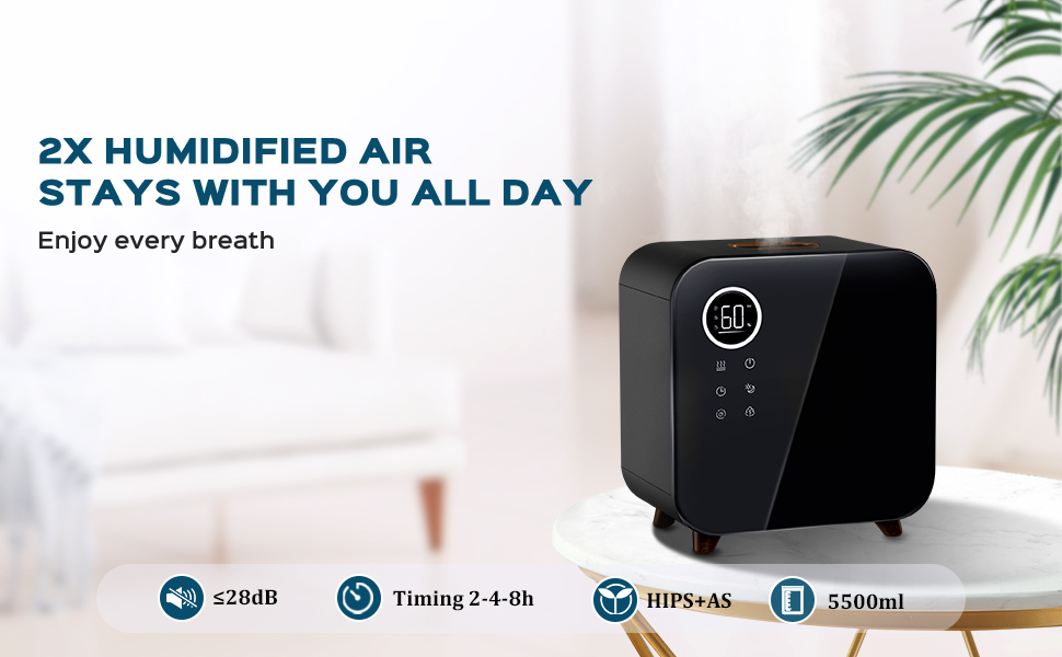• 💦【سعة كبيرة 5.5 لتر】يحتوي جهاز الترطيب هذا على خزان مياه كبير سعة 5.5 لتر، مما يوفر ما يصل إلى 60 ساعة من الرطوبة المستمرة في إعداد الضباب المنخفض. ليس عليك إعادة ملء الماء بشكل متكرر. مما يساعدك على النوم بشكل مريح كل ليلة دون احتقان أو جفاف الجلد أو السعال أو جفاف الفم.