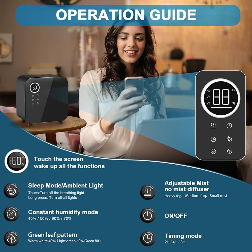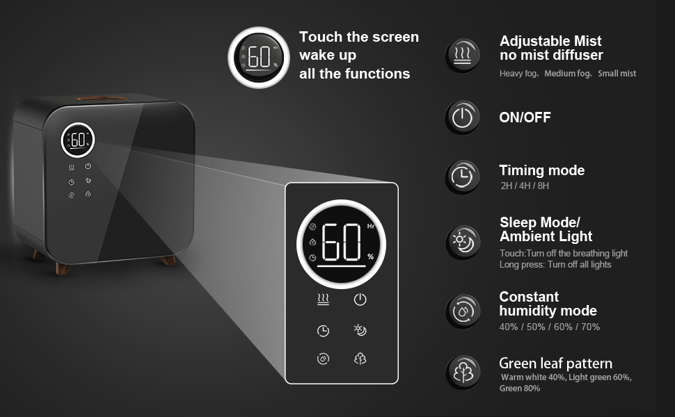 • 🌈【تحكم ذكي في الرطوبة باللمس】نمط رطوبة ثابتة وخضراء: يمكن الحفاظ عليه ثابتًا ومعتدلًا، مناسب لاحتياجاتك الشخصية واحتياجات نباتاتك. تحكم في راحتك مع 3 إعدادات للرذاذ قابلة للتعديل. تسمح لك الفوهة الدوارة بزاوية 360 درجة بتوجيه الضباب في أي اتجاه مرغوب.