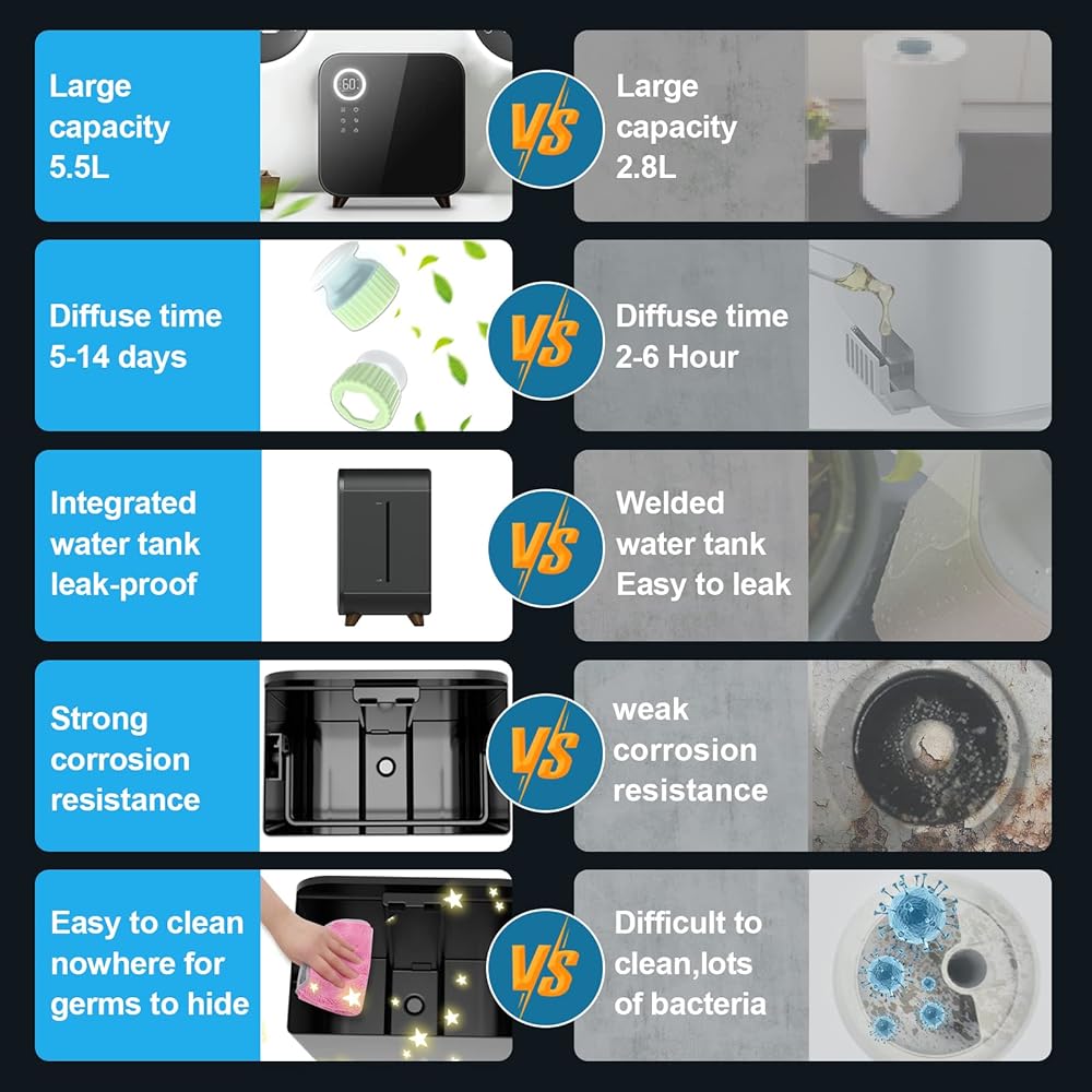 • 🧽【لا يوجد تسرب وسهل التنظيف】: تصميم خزان مياه متكامل بملء علوي، ما عليك سوى صب الماء مباشرة في الخزان وتنظيفه بسهولة بفضل الفتحة العلوية الواسعة. لا يوجد متاعب في التقليب أو الانسكاب. موزع روائح ومرطب 2 في 1، ضع الزيت العطري للعلاج العطري في الزجاجة المصممة خصيصًا لخلق بيئة منزلية عطرة، يمكن أن يدوم من 7 إلى 14 يومًا اعتمادًا على عدد قطرة الزيت التي تضعها، دون التعرض لخطر تسرب الماء. , أسهل في التنظيف.
