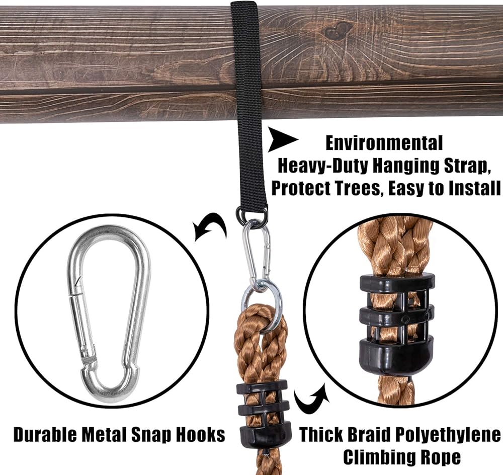 • سهل التركيب: حبل التسلق هذا بسيط جدًا وسريع التركيب. يستغرق الأمر بضع دقائق فقط لتجميعها معًا، وتعليقها في الفناء الخلفي الخاص بك، والسماح لأطفالك بتجربة متعة الأنشطة الخارجية!