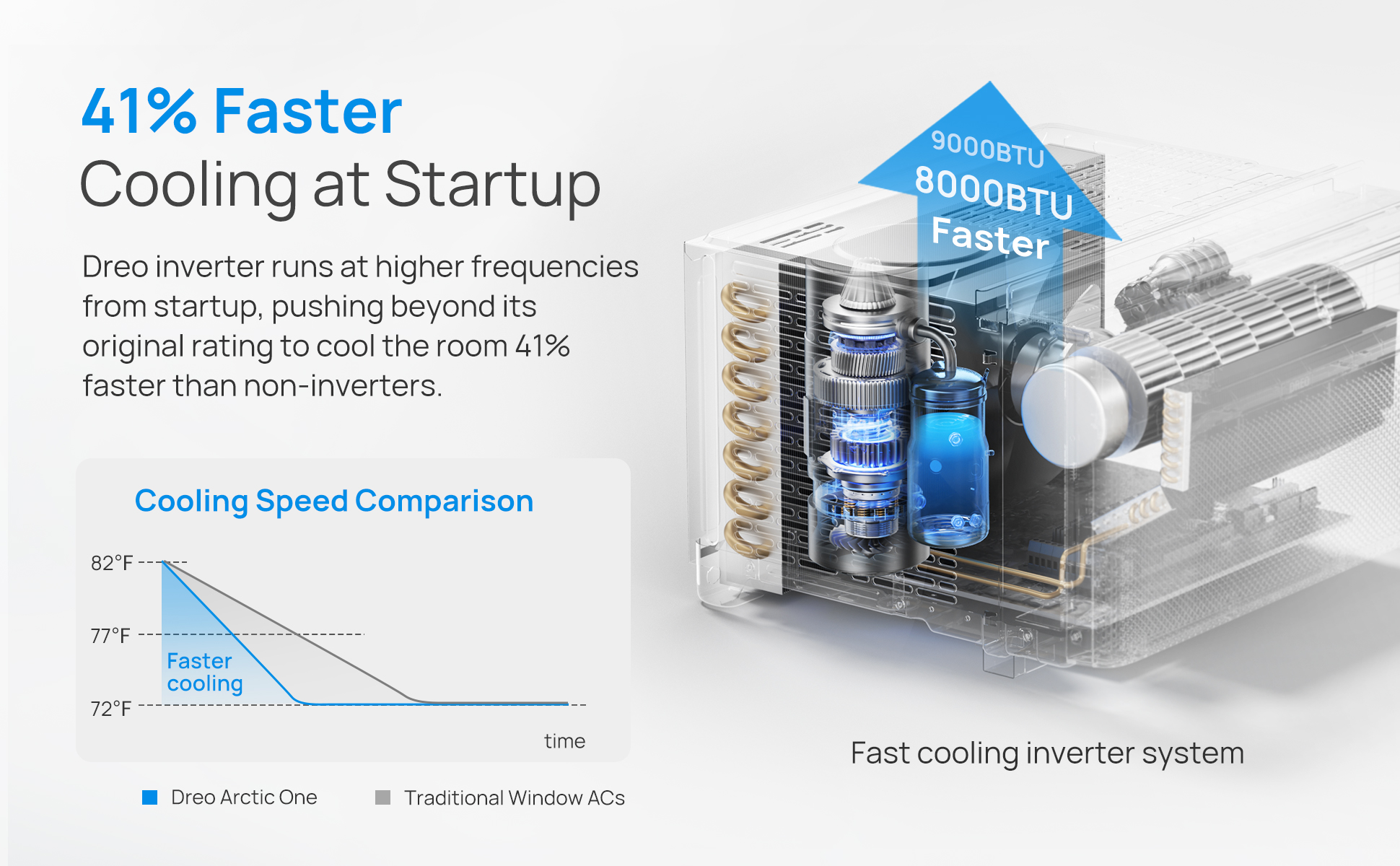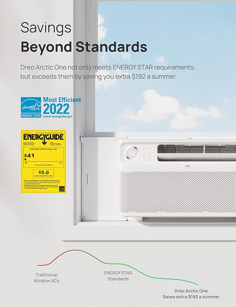 معتمد من ENERGY STAR: تشغيل منخفض الطاقة وضاغط عاكس دريو يمنحك توفير طاقة أكبر بنسبة 35% مقارنة بالضواغط التقليدية. معتمد من انرجي ستار بتصنيف 15.0 CEER لمساعدتك على البقاء باردًا والحفاظ على فواتير الكهرباء منخفضة.