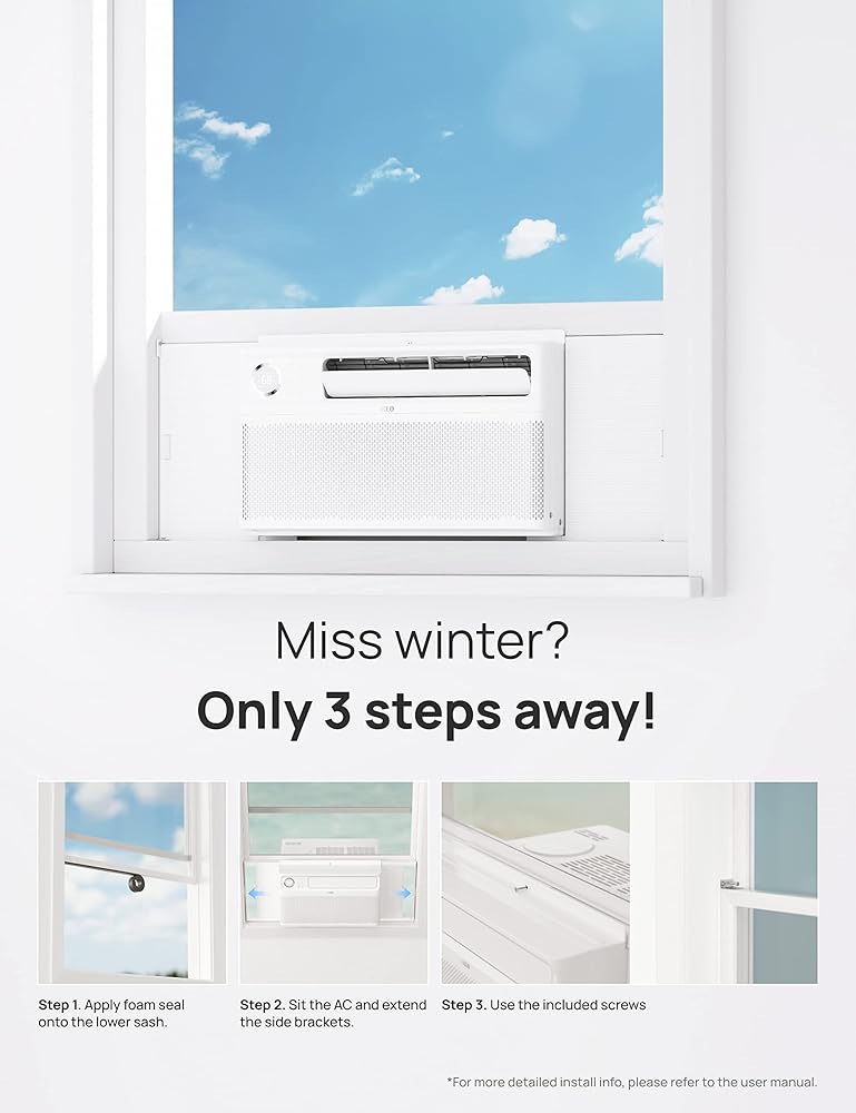 التركيب في دقائق، بارد 4 مواسم: بفضل تصميمه المُجمَّع مسبقًا، توفر لك وحدة دريو AC 30-50% من الوقت عند التركيب مقارنةً بوحدات تكييف النوافذ التقليدية. كل ما عليك فعله هو تحريكه وتثبيته بالبراغي. سهل التركيب للغاية ومقاوم للسرقة.