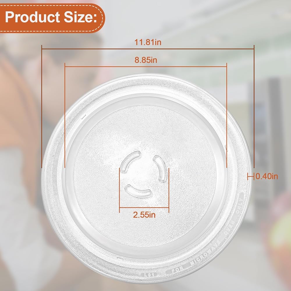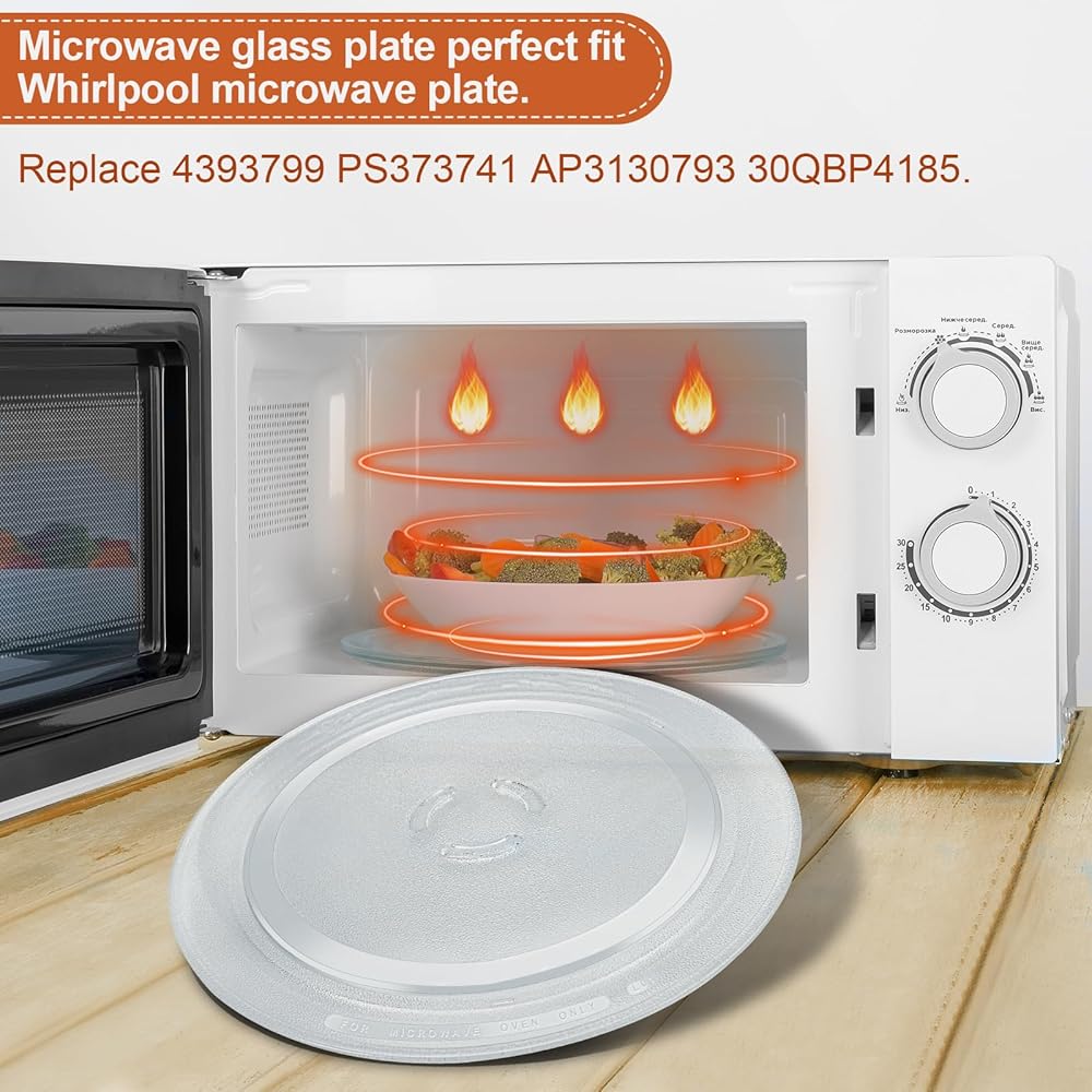 𝐌𝐢𝐜𝐫𝐨𝐰𝐚𝐯𝐞 𝐏𝐥𝐚𝐭𝐞 𝐑𝐞𝐩𝐥𝐚𝐜𝐞𝐦𝐞𝐧𝐭: Our microwave plate can replace broken or soiled glass plates for your Whirl-pool,Ken-more,Kitchen-Aid,Ama-na,Es-tate,Jenn-Air,May-tag,Ro-per microwave. Replace Parts: 4393799, 4393751, AP3130793, PS373741, EAP373741, 8206226, 588305, 30QBP4185. The 12 inch Microwave Glass Plate is a high-quality replacement part , providing ample space for a variety of dishes.