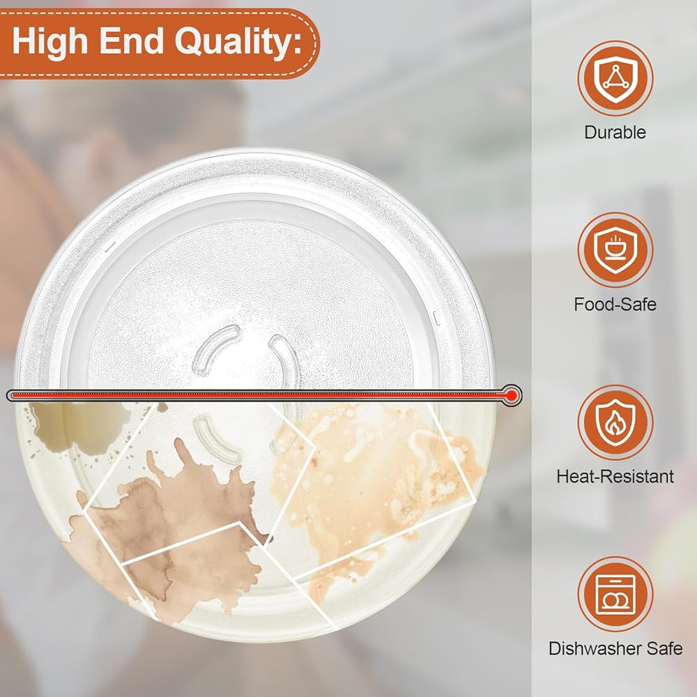 𝐅𝐨𝐨𝐝-𝐒𝐚𝐟𝐞 𝐆𝐥𝐚𝐬𝐬 𝐌𝐚𝐭𝐞𝐫𝐢𝐚𝐥: Microwave glass plate Replacement is made from durable, heat-resistant and wear-resistant glass materials(without BPA glass) , ensuring that it can withstand the high temperatures generated by your microwave. Provide you a reliable service and lasting for a longtime. extend the life of the microwave oven.