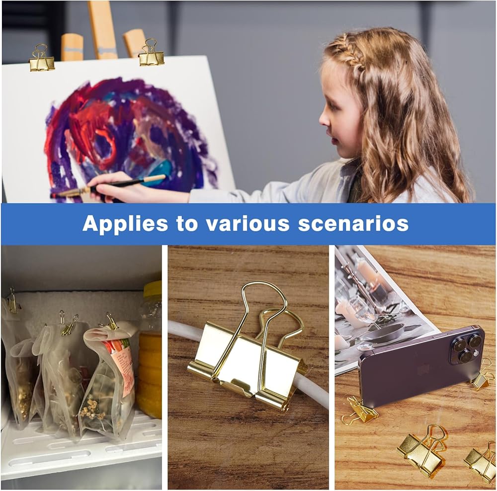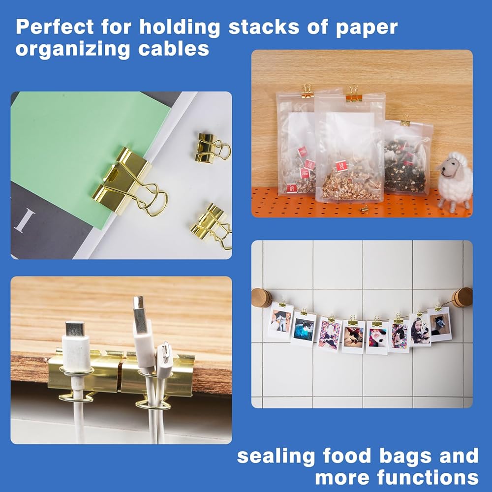 ✅【سيناريوهات قابلة للتطبيق】هذه المشابك الورقية ذات الأحجام المتنوعة مثالية لتنظيم المستندات وورق الربط الفوري وتخزين كابلات البيانات وإغلاق أكياس الرقائق وإنشاء جدار للصور. منتج يومي لا غنى عنه للمكتب والمنزل والمدرسة والمناطق الحرفية.