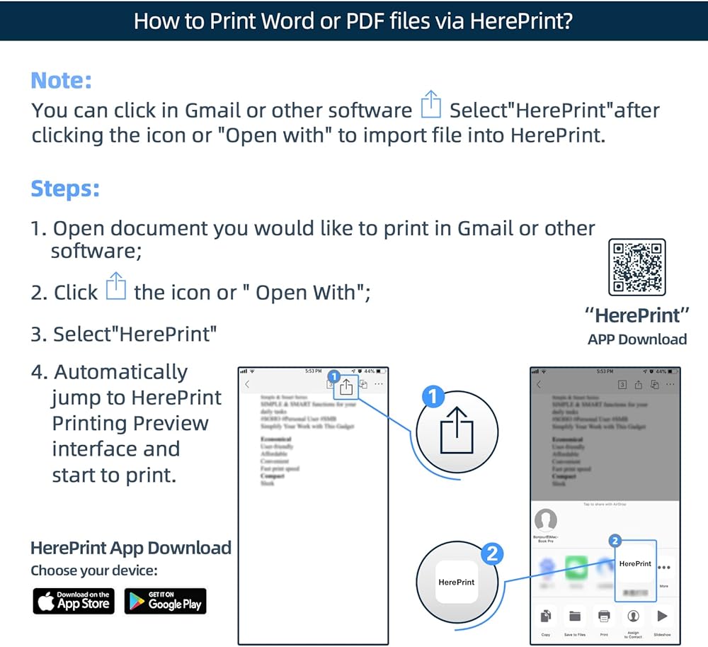 طباعة جيدة - جودة الطباعة جيدة مع نص واضح داكن ومقاوم للماء بشكل مقروء في ملفات PDF أو Word باستخدام تقنية النقل الحراري بدون حبر. لا يوجد حبر مسدود؛ لا يوجد تسرب للحبر؛ علاوة على ذلك، يوصى بشدة باستخدام ورق HPRT اللامع لأن السطح اللامع يجعل جودة الطباعة أكثر وضوحًا. (ملاحظة: AirPrint غير مدعوم في الطابعة حاليًا)