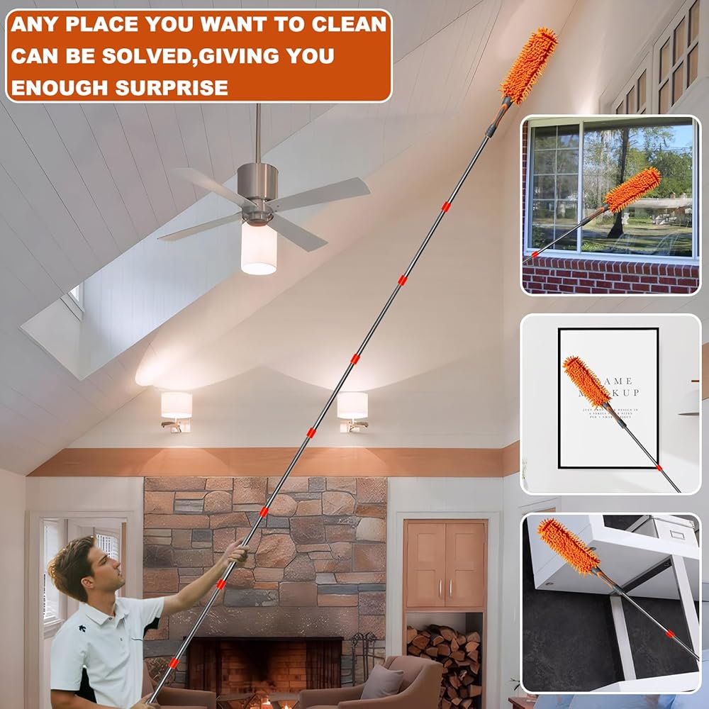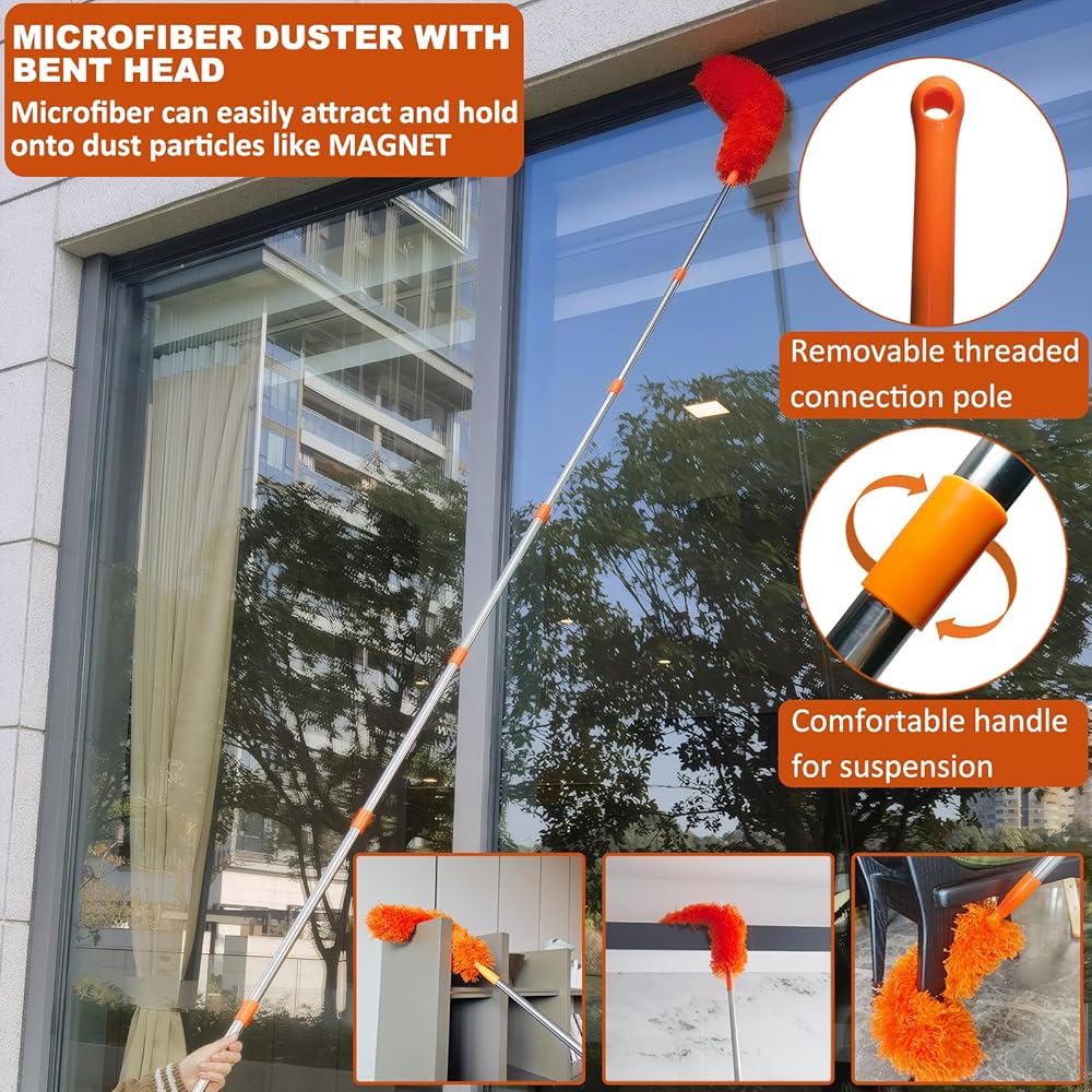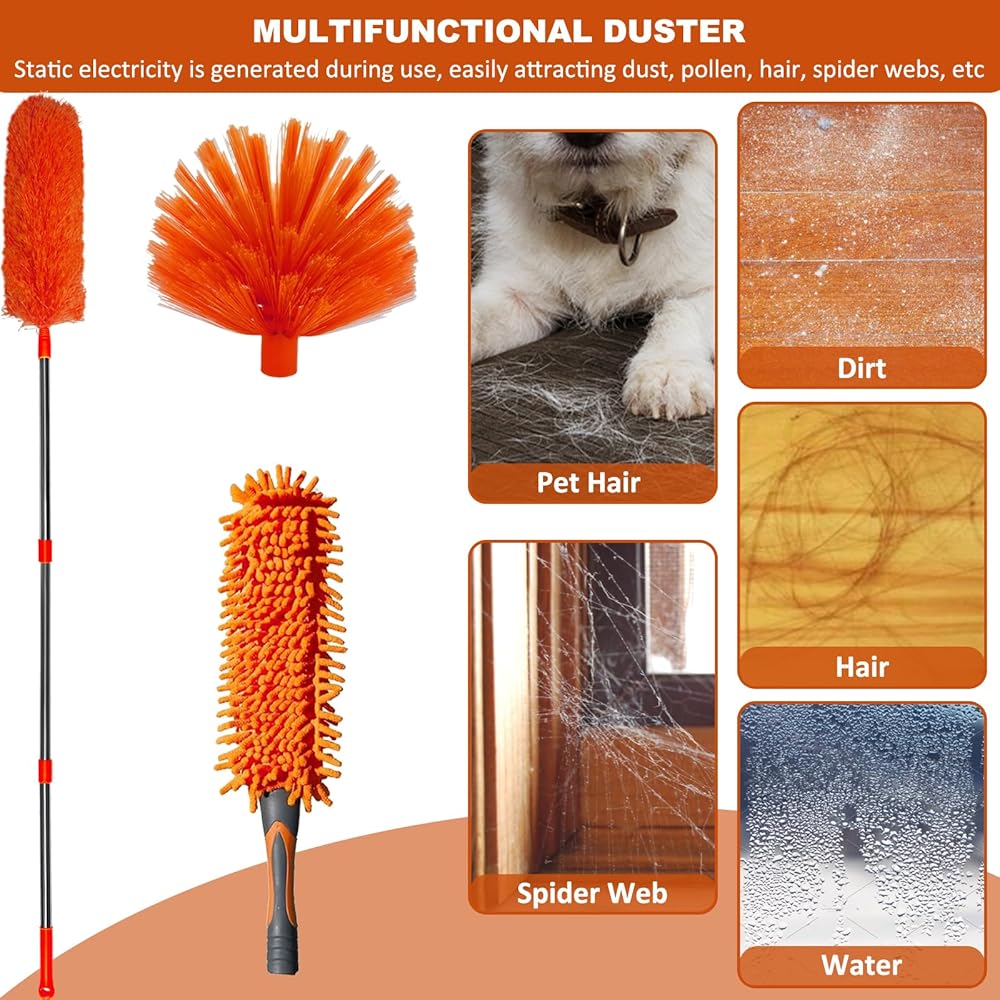 تنظيف فعال للغبار وشبكة العنكبوت: سواء كان ذلك أسقف عالية، أو جدران خارجية، أو مراوح، أو فتحات تكييف الهواء، أو أغطية المصابيح، أو الأجهزة المنزلية، أو المصاريع، أو السيارات، أو إطارات الصور، فإن مجموعة الغبار الخاصة بنا ستترك منزلك نظيفًا.