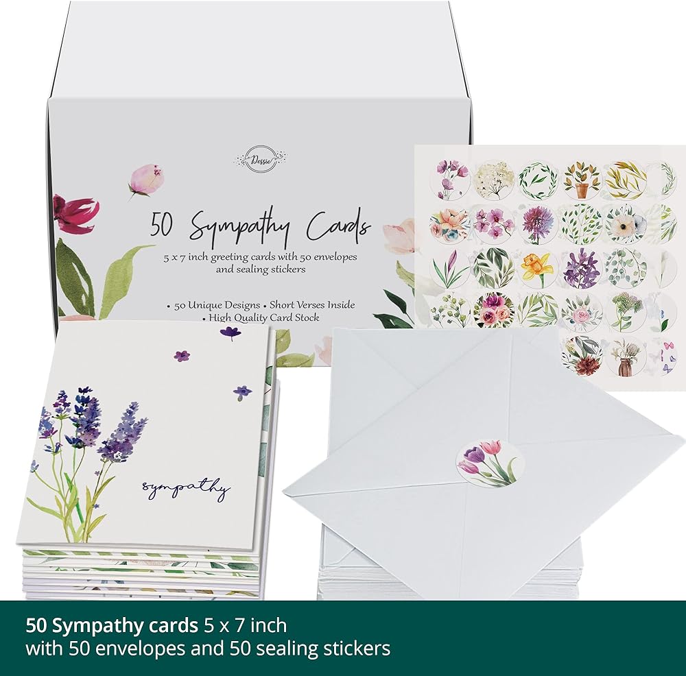 تتضمن مجموعتنا المكونة من 50 بطاقة تعاطف 50 بطاقة حزن ومغلفات فريدة من نوعها بتصميمات زهور فريدة ونقية؛ لا توجد تصاميم متكررة