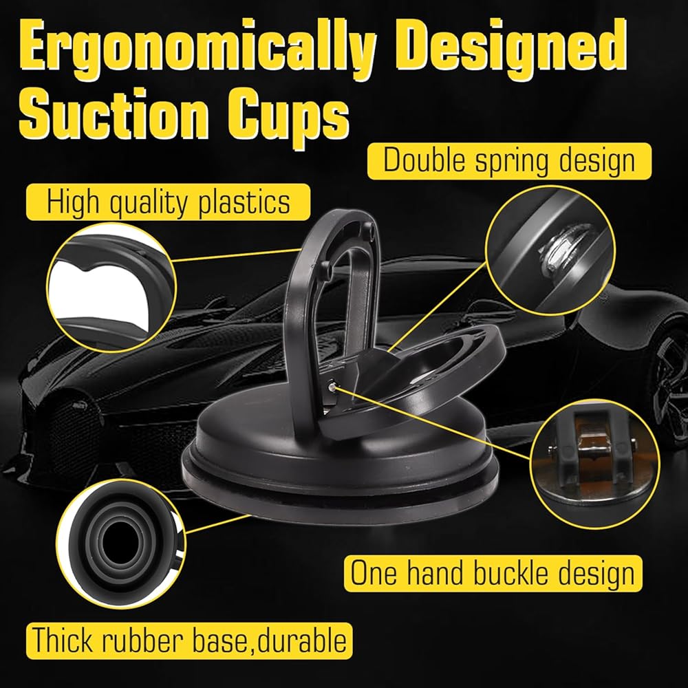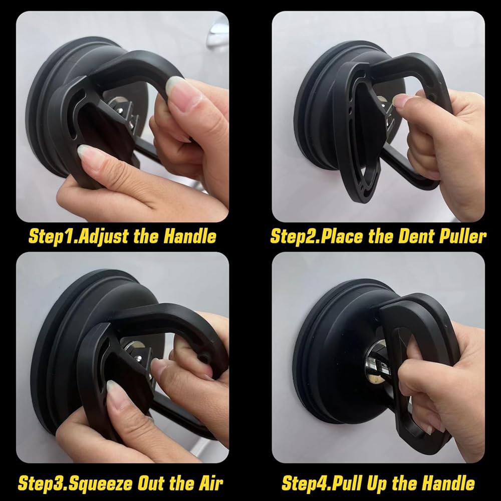 🎇【Warm Reminder】Must be used on clean, smooth, flat, non-porous, dry surfaces when you use powerful car dent remover,Always try to make sure there is good suction before lifting. Before using the suction cup, pour hot water at 80-100℃(176-212℉) on the dent area. After pouring the hot water, quickly place the suction cup on the dent of the car,and then pull it out horizontally.