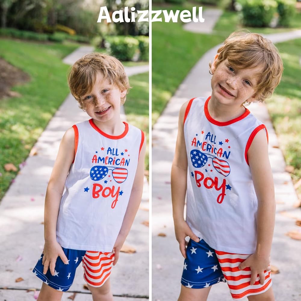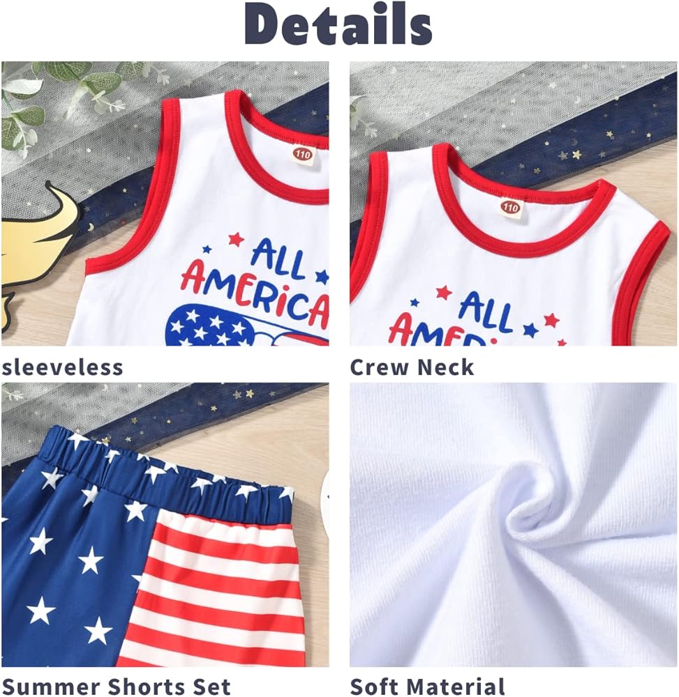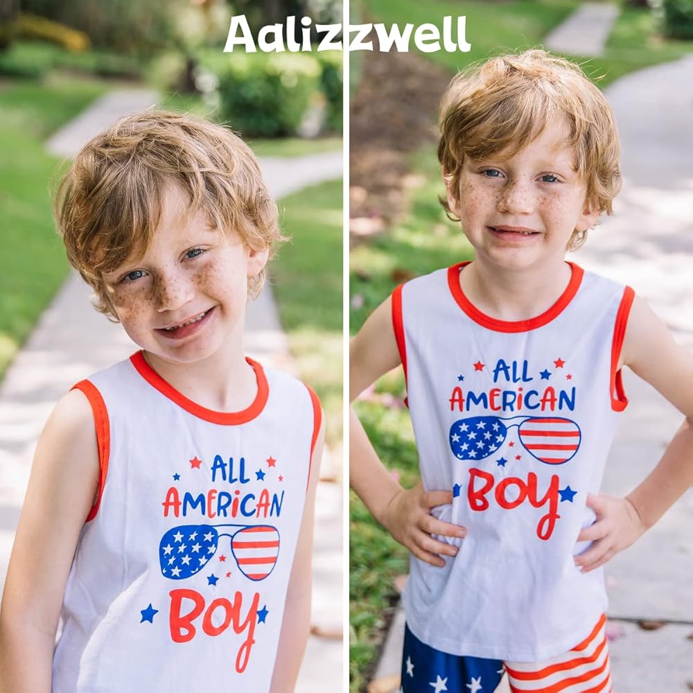 تصميم رائع: قميص Aalizzwell كلاسيكي بدون أكمام برقبة دائرية بعلم أمريكي مع موضوع يوم الاستقلال، شورت بحزام خصر مرن. نمط مختلف للاختيار، يبدو ذكيًا بشكل خاص! تم تصميم كل التفاصيل للأطفال، مما يمنحهم مساحة حرة للنمو.