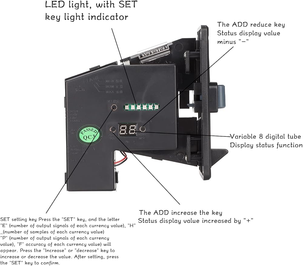 • REFUND BUTTON: The multi acceptor has a refund button, which can be easily handled with a single touch, and supports 6 kinds of .