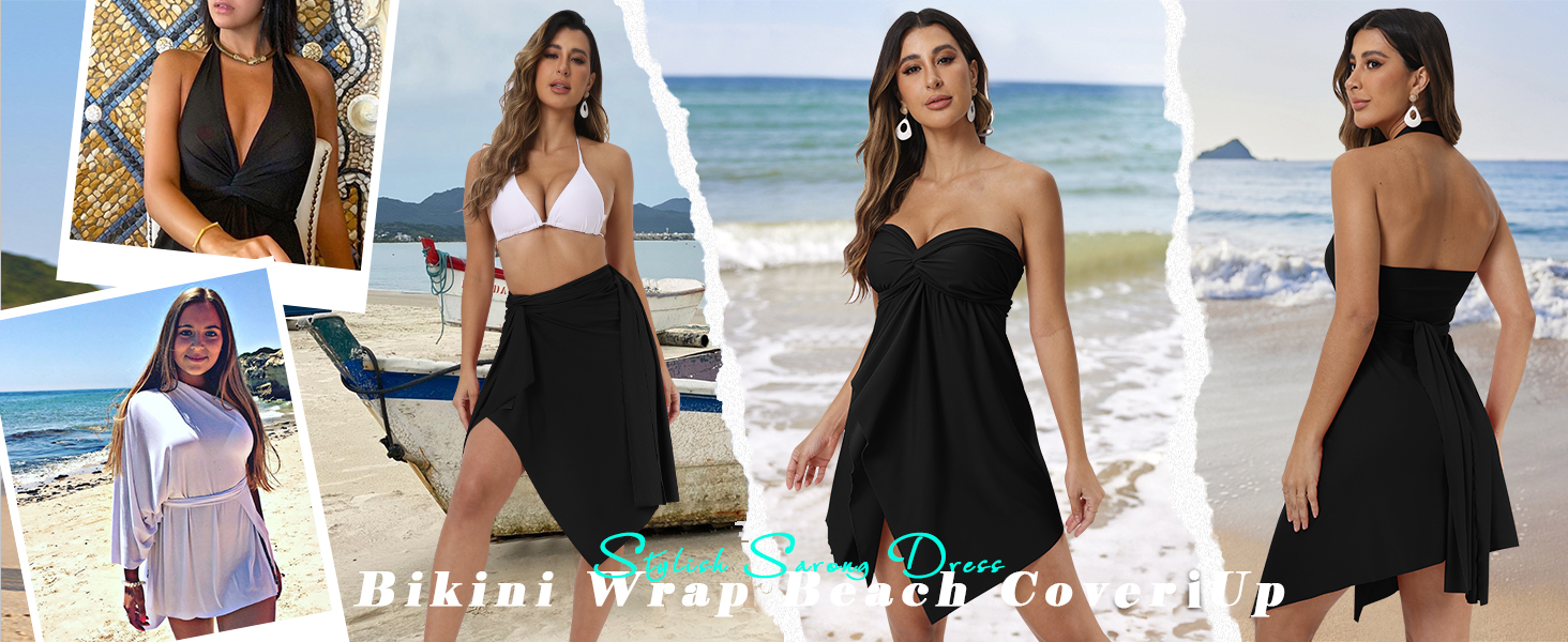 ملابس السباحة النسائية التستر على الشاطئ والسباحة بيكيني التستر ثوب السباحة سارونج يلتف للنساء