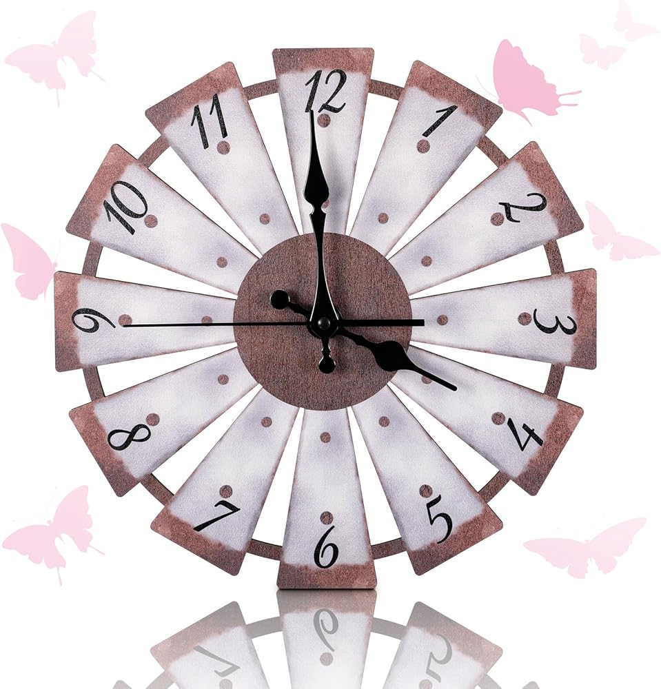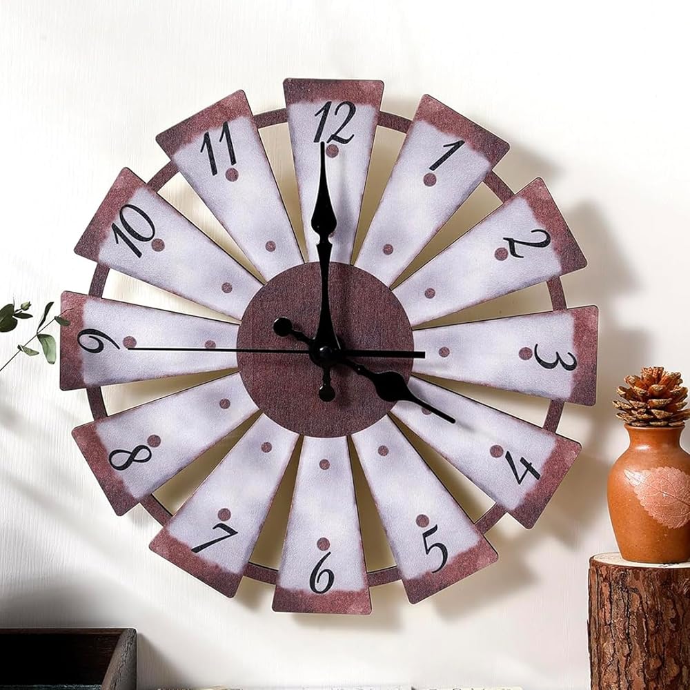 Our wood windmill antique clock is made of quality, sturdy wood. The wood adds to the rustic appeal of the clock while providing durability and stability. The clock is not just a device to keep time, but a long lasting piece of decor for your home.