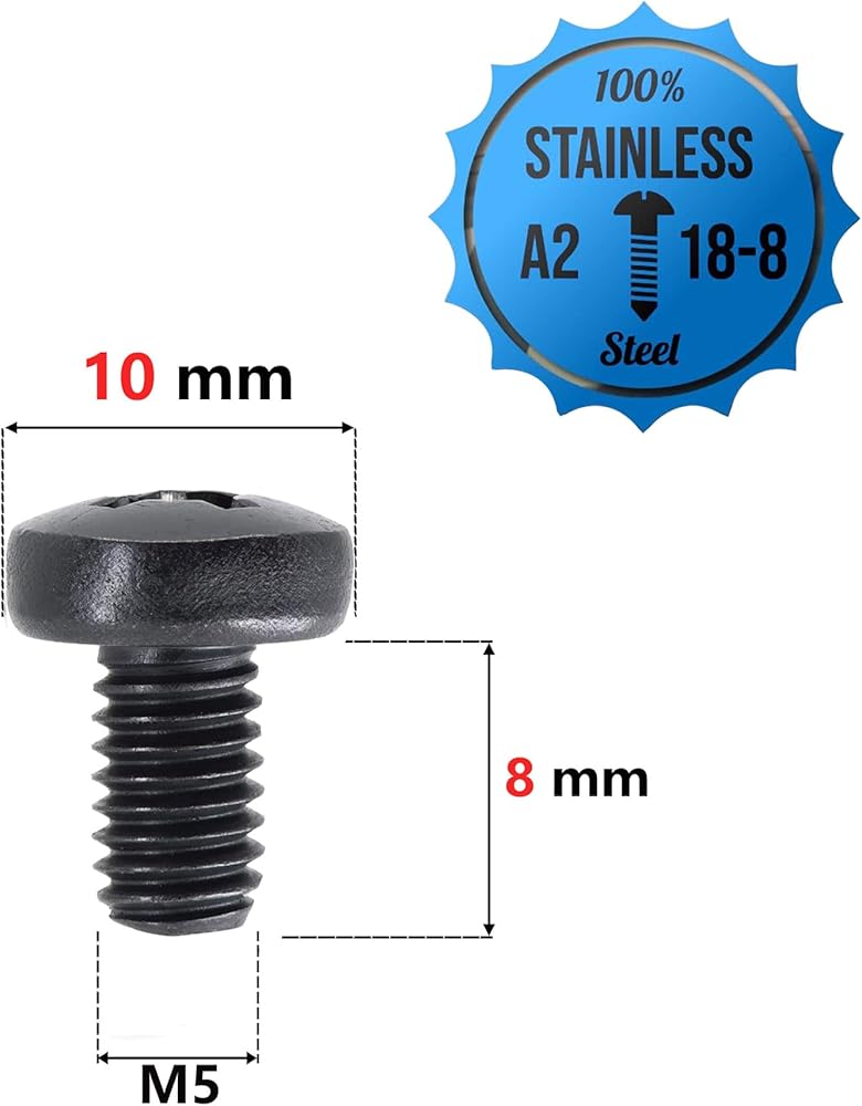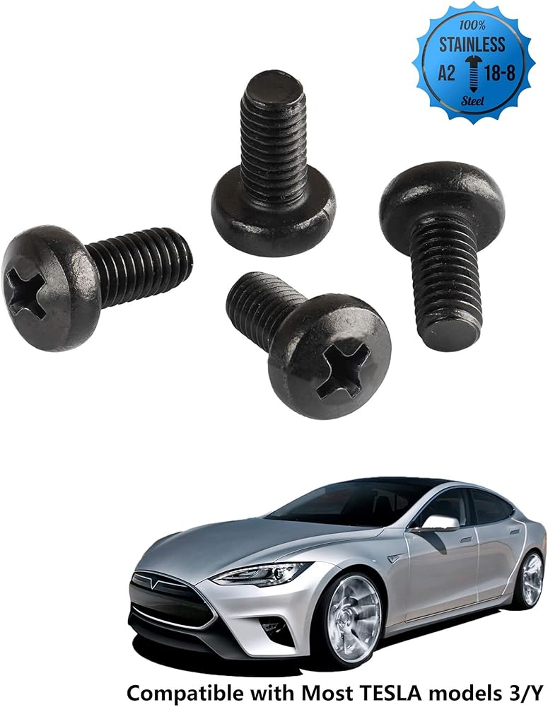 PERFECT FITMENT — M5-0.8 diameter fits most models with a metal threaded screw retainer; 8 mm length ideal for attaching license plates without a license frame, black oxidized in the USA. On Tesla rear license plates for Model 3, Model Y, Model X, and Model S cars.