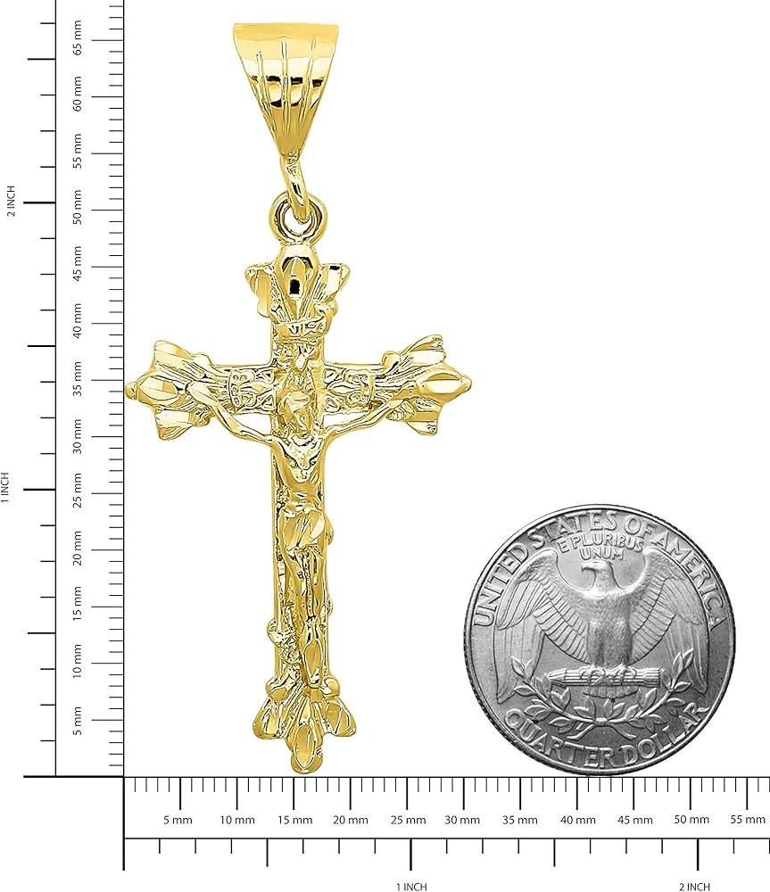 قلادة مطلية بالذهب عيار 14 قيراط 32.5 مم × 46 مم فلور دي ليز أوريجينالز صليب