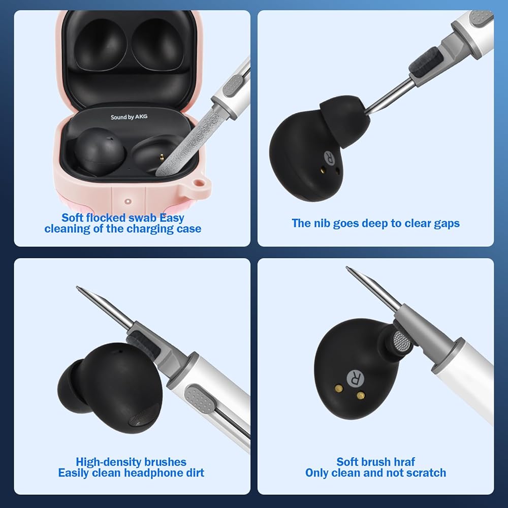 【مع الملحقات 】غطاء حافظة Samsung Galaxy Buds هذا مزود بحلقة تسلق وفرشاة تنظيف. يمكن تعليق الحلقة على حزامك أو حقيبتك أو مفتاحك. تقوم فرشاة التنظيف بتنظيف الغبار والأوساخ الموجودة في الشقوق الداخلية لعلبة الشحن Galaxy Buds FE / 2 Pro / Pro / 2 / Live.