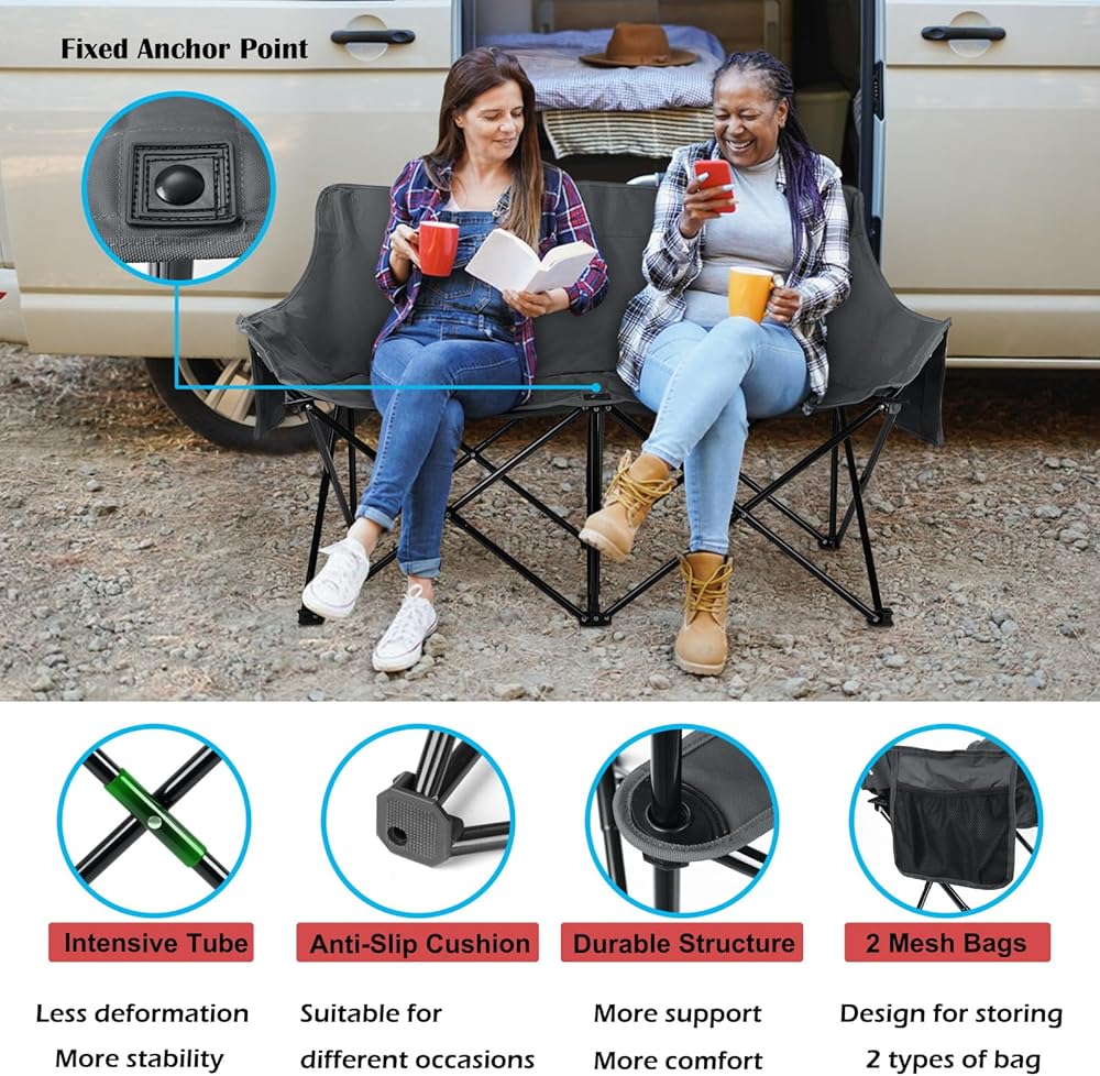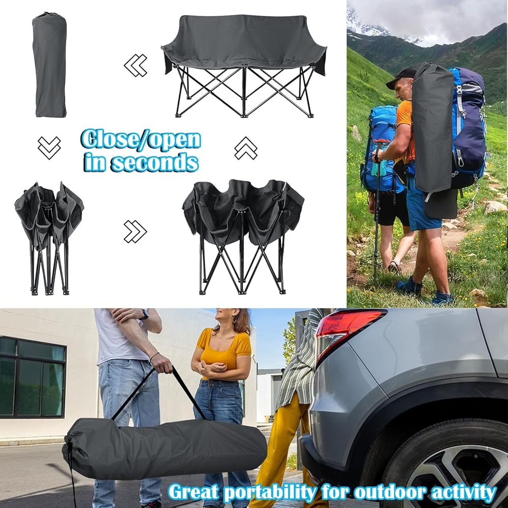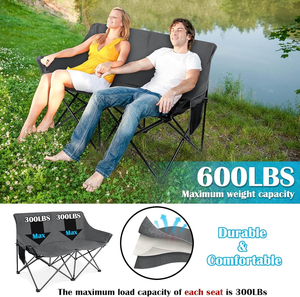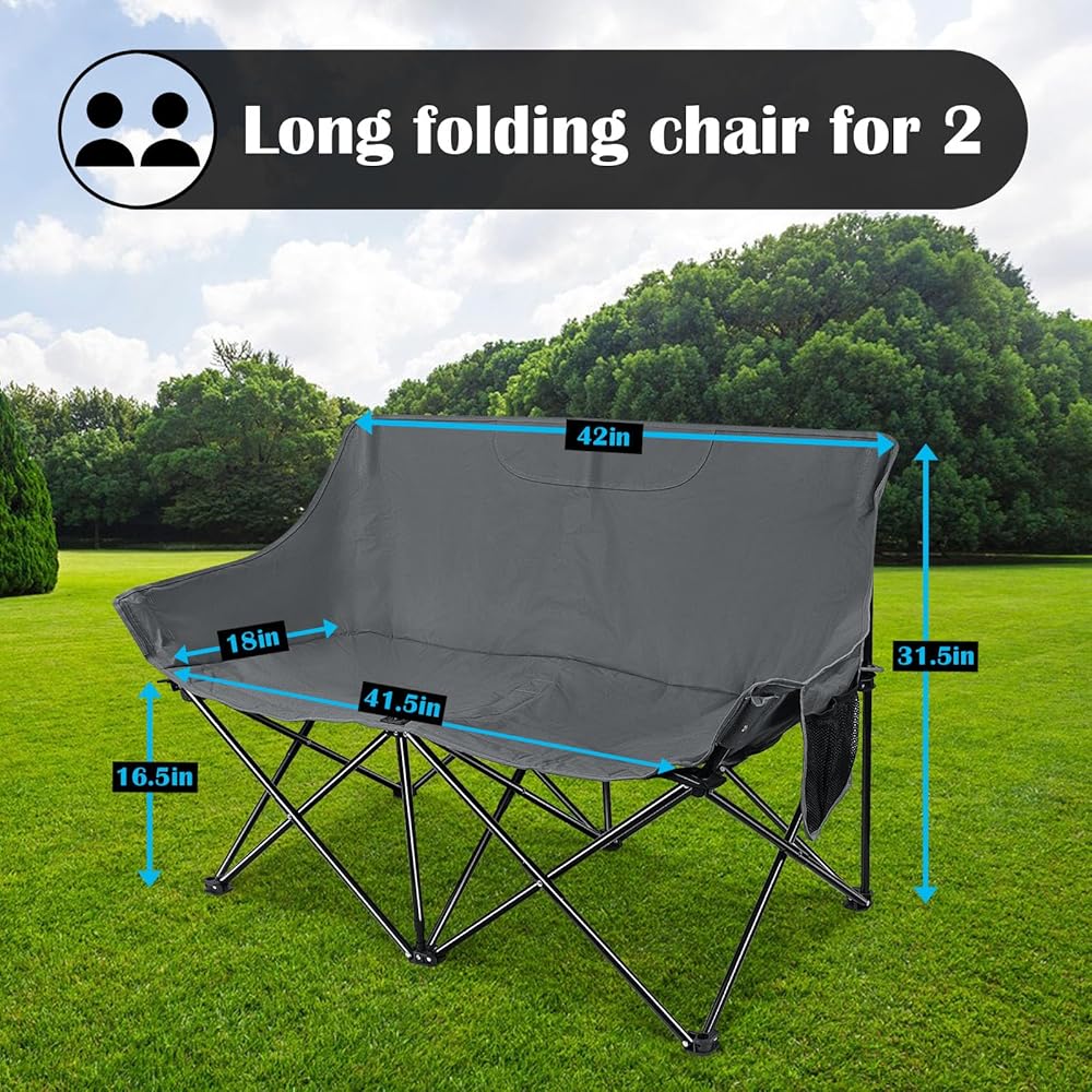 [مقعد حب مريح] - الأبعاد المقاسة هي 41.5 × 31.5 × 18 بوصة (طول × ارتفاع × عرض)، تناسب بسهولة شخصين بشكل مريح، مثالية للعناق مع أحبائك لإجراء محادثات قريبة أو مشاهدة غروب الشمس أو الاستمتاع بنسيم الجبل، مصمم بمقعد إسفنجي مبطن للراحة الشعور بالاسترخاء للغاية في كرسي التخييم ذو المقعد المزدوج هذا مع صديقك أو عائلتك أو حبك أو حيوانك الأليف