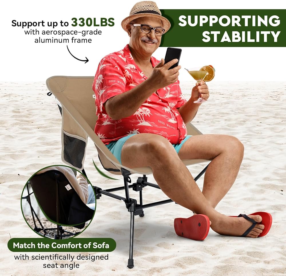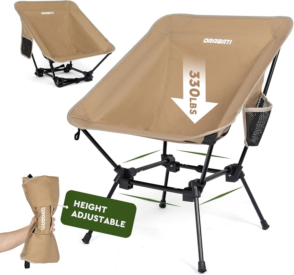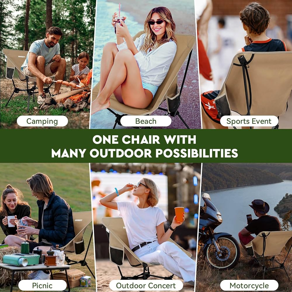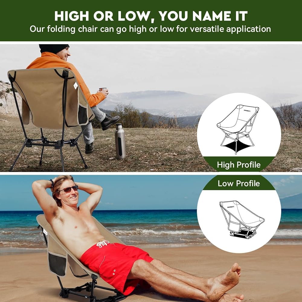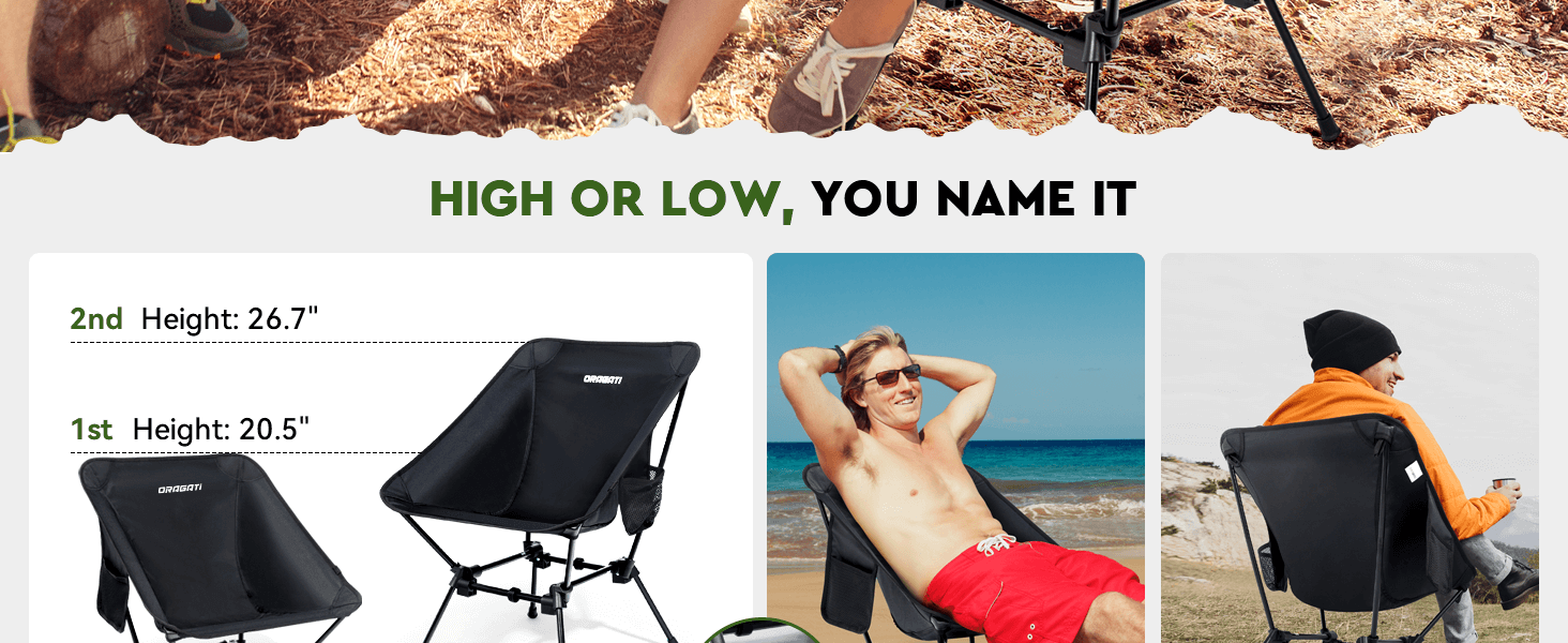 🏕️ 𝗛𝗜𝗚𝗛 𝗢𝗥 𝗟𝗢𝗪 𝗦𝗘𝗔𝗧 𝗙𝗢𝗥 𝗘𝗩𝗘𝗥𝗜 𝗢𝗡 - ارفع مستوى تجربتك الخارجية مع كرسي التخييم القابل للطي الذي يتميز بارتفاعين قابلين للتعديل. سواء كنت تستمتع بغروب الشمس الهادئ أو تهتف في حدث رياضي مفعم بالحيوية، يمكنك التبديل بين وضع المقعد المرتفع أو المنخفض دون عناء. مثالية للبالغين والأطفال وحتى أصدقائك ذوي الفراء!