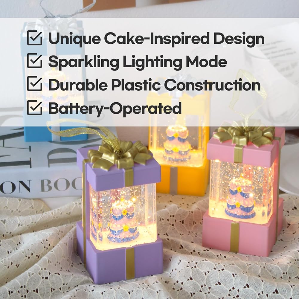 تصميم فريد مستوحى من الكعك: اسعد أحبائك بهذه الكرة الثلجية الساحرة على شكل صندوق هدايا والتي تتميز بكعكة واقعية بداخلها. مثالي لأعياد الميلاد أو الذكرى السنوية أو الكريسماس أو أي مناسبة خاصة!