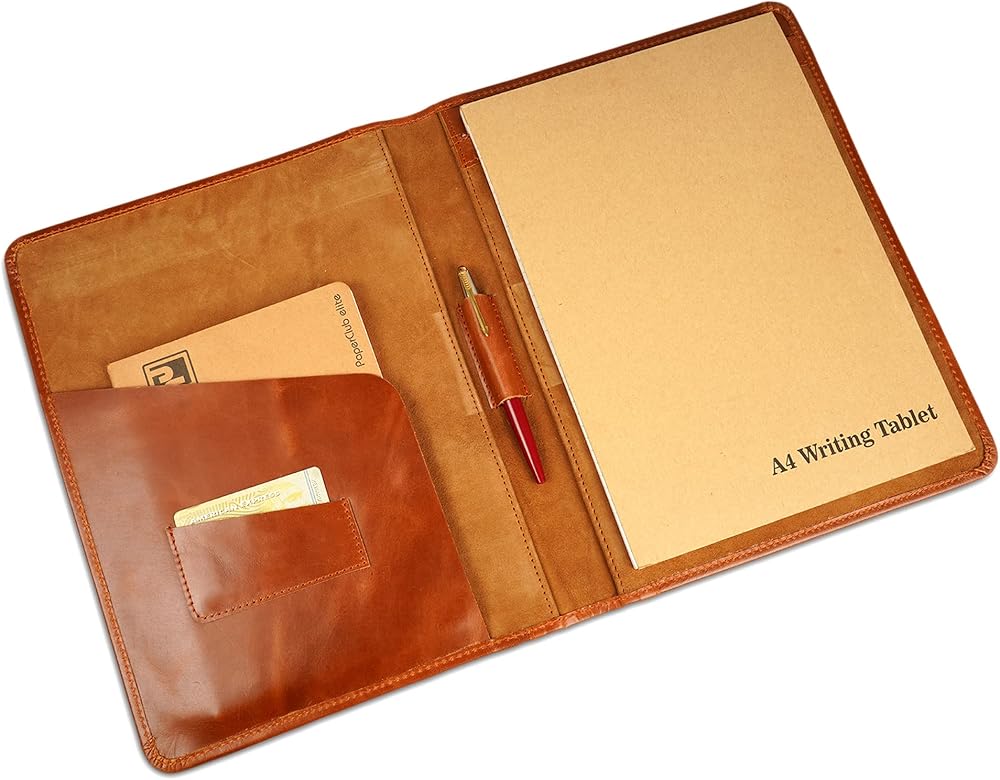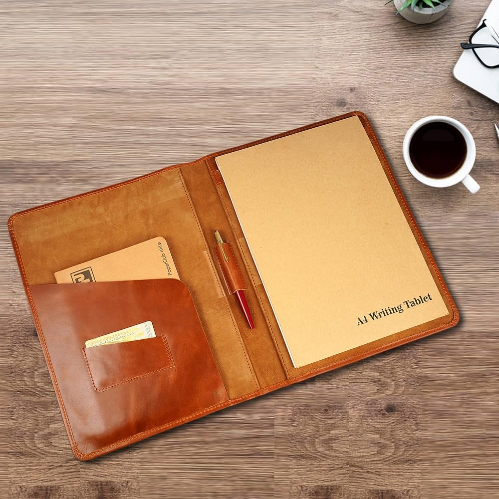 CestAntiQ، حافظة جلدية مقاس A4، حافظة مستندات قانونية، منظم أكمام حافظة للكتابة الاحترافية، حافظة فوليو للرجال والنساء باللون البني الكونياك