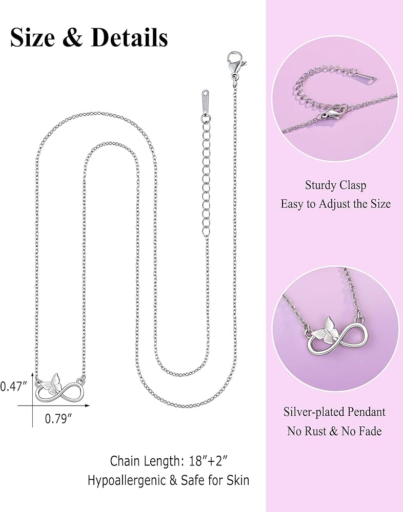 【قلادة فراشة للفتيات】-- جنبًا إلى جنب مع الفراشة الرائعة ورموز اللانهاية، ترمز هذه القلادة إلى الحب والاحتمال غير المحدود. أعط هذه القلادة لفتاتك، وذكّرها بشجاعتها وقوتها وذكائها وحبها. يا لها من هدية تخرج ذات معنى!