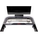 The Steptray: Kick your productivity into high gear (COMPATIBLE WITH PELOTON TREAD PLUS ONLY, LARGER TREAD)! The original multi-tasking accessory for your Peloton Tread, The StepTray by TFD seamlessly turns your compatible treadmill into a functional dual-purpose workstation—work, meet, read, or watch TV while you walk or jog. This supportive acrylic tray table fits onto your handlebar and is the perfect laptop tray or holder for your tablet, phone, books, and more