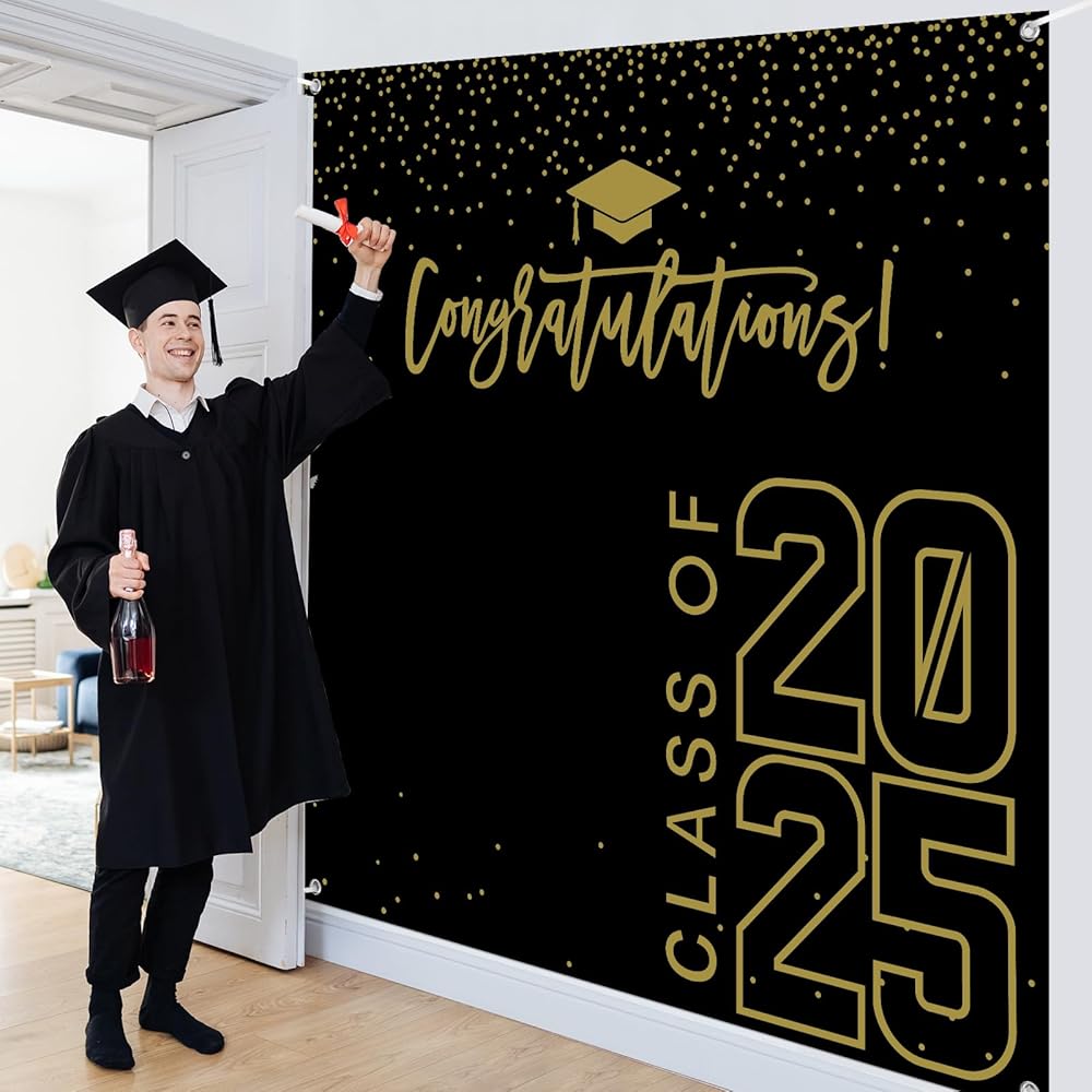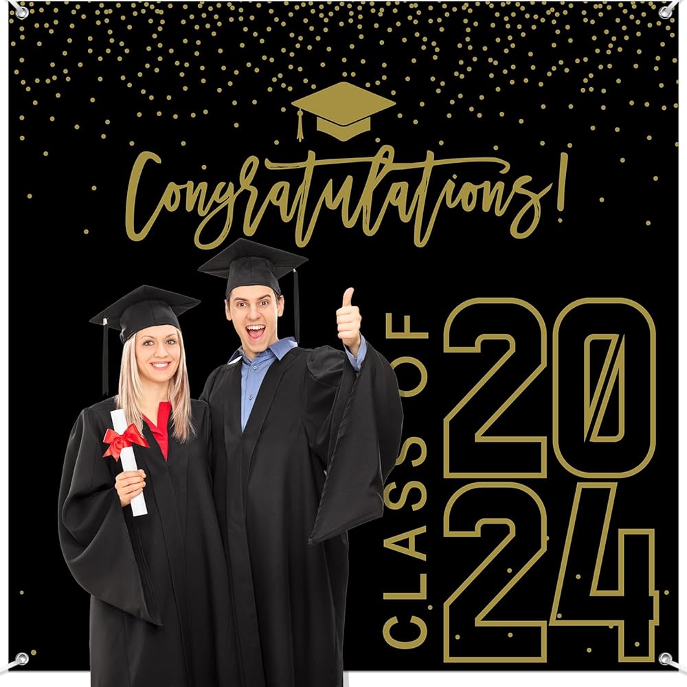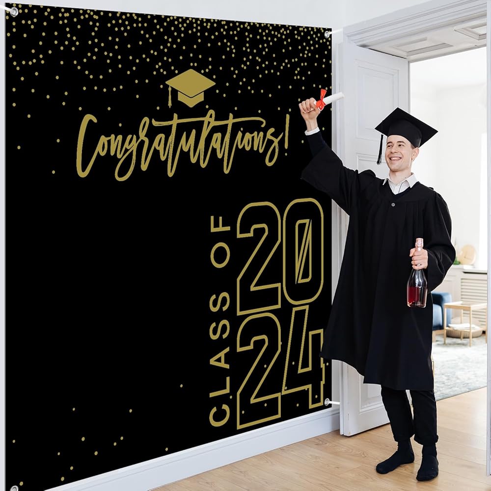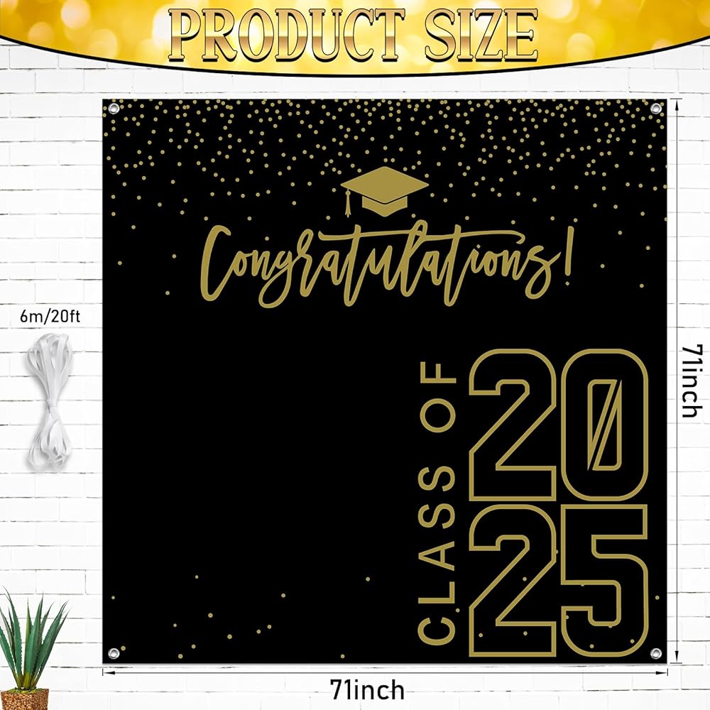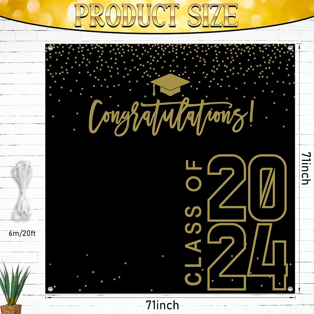 Package Include: you will get a class of 2024 graduation backdrop and a rope, the backdrop measures approx 180 x 180 cm/ 6 x 6 ft , the rope measures 20 ft/ 6 m long, which can be easily hung on the wall, door or anywhere you want,very suitable for high school, college, university graduation party decorations.