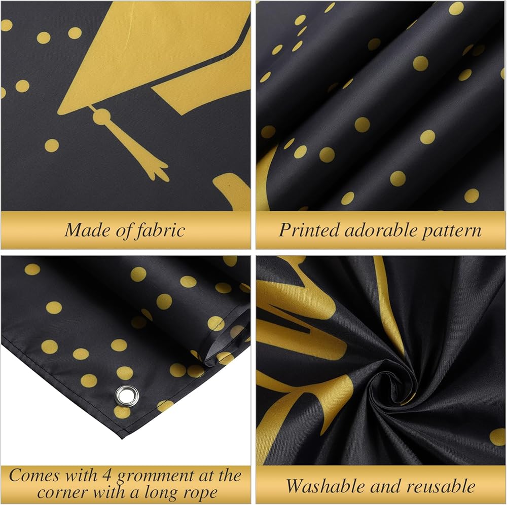 Easy to Hang: this class of 2024 photo background with grommet hole on the 4 corner and the rope string can easy to hang through the copper grommet, you can easily make interesting graduation photo backgrounds to take photos.