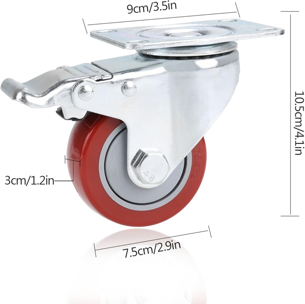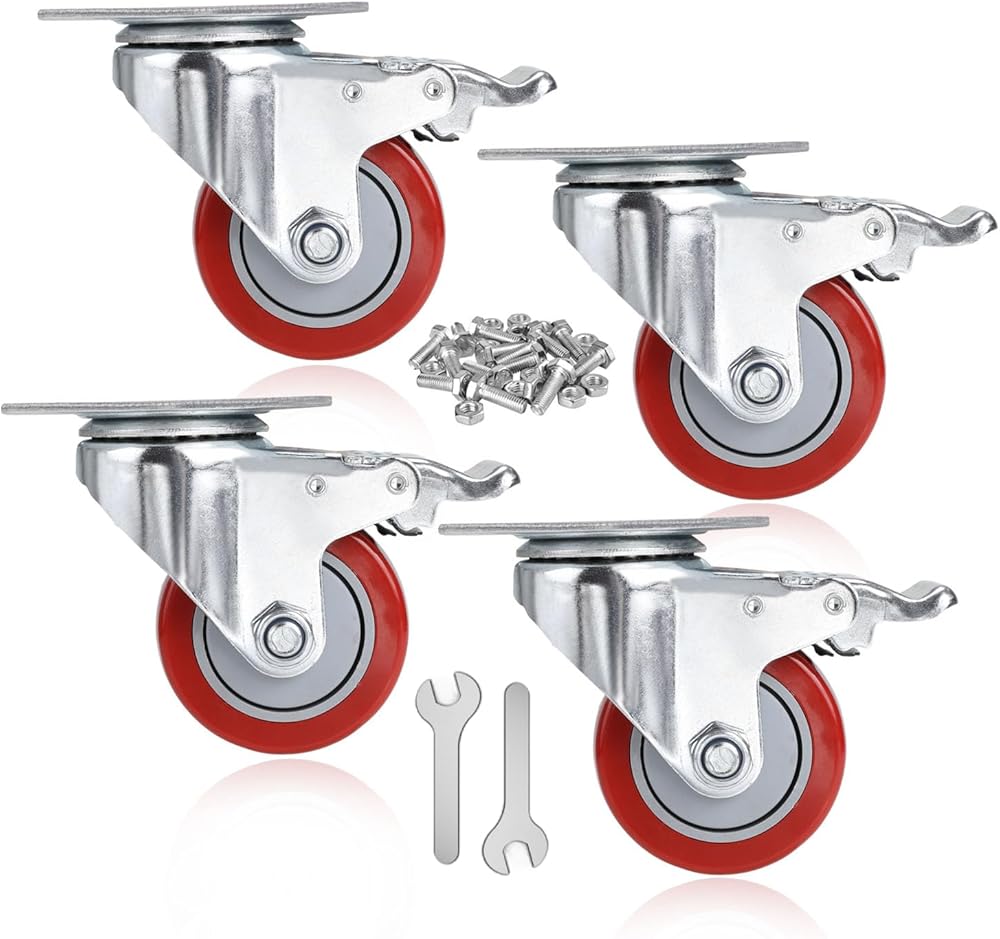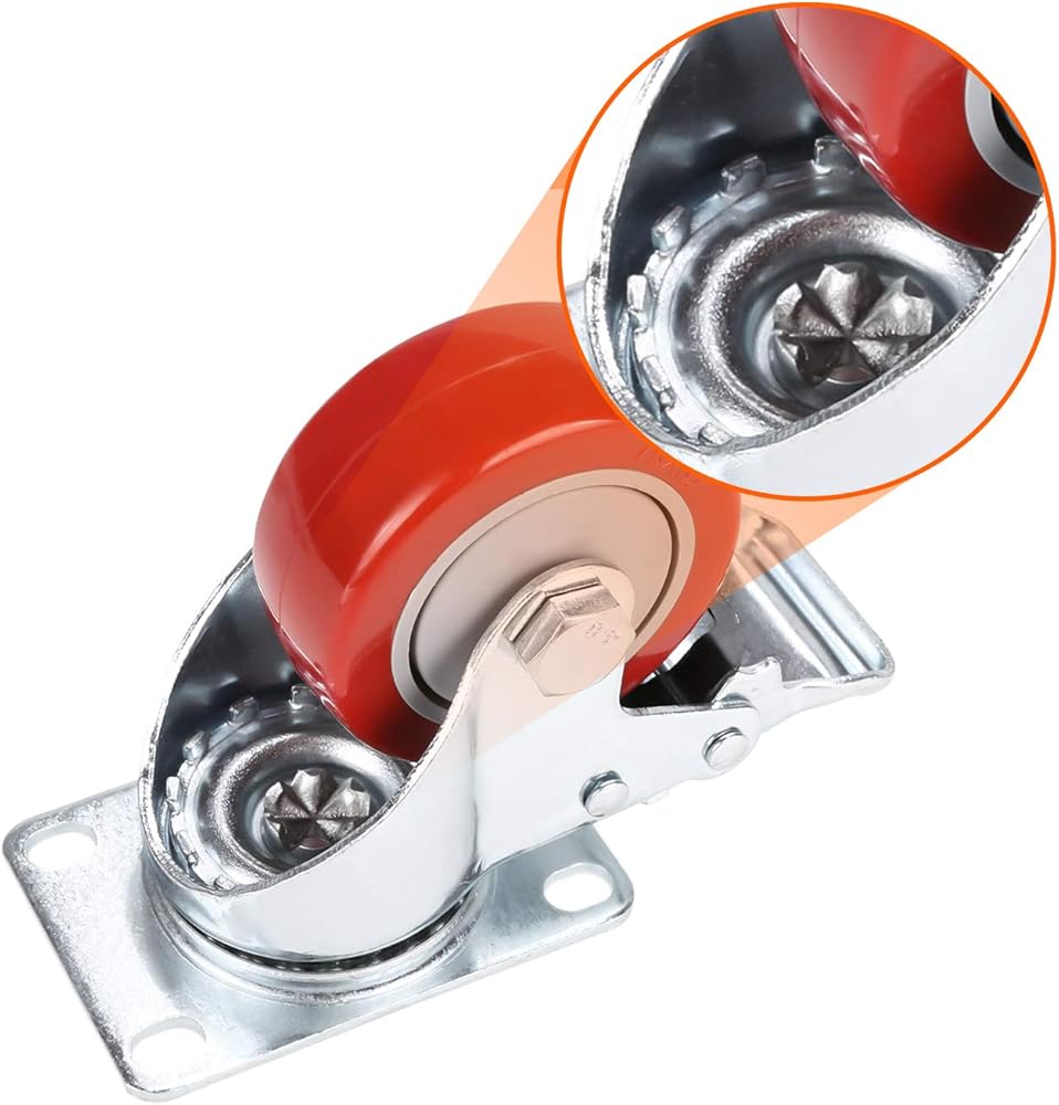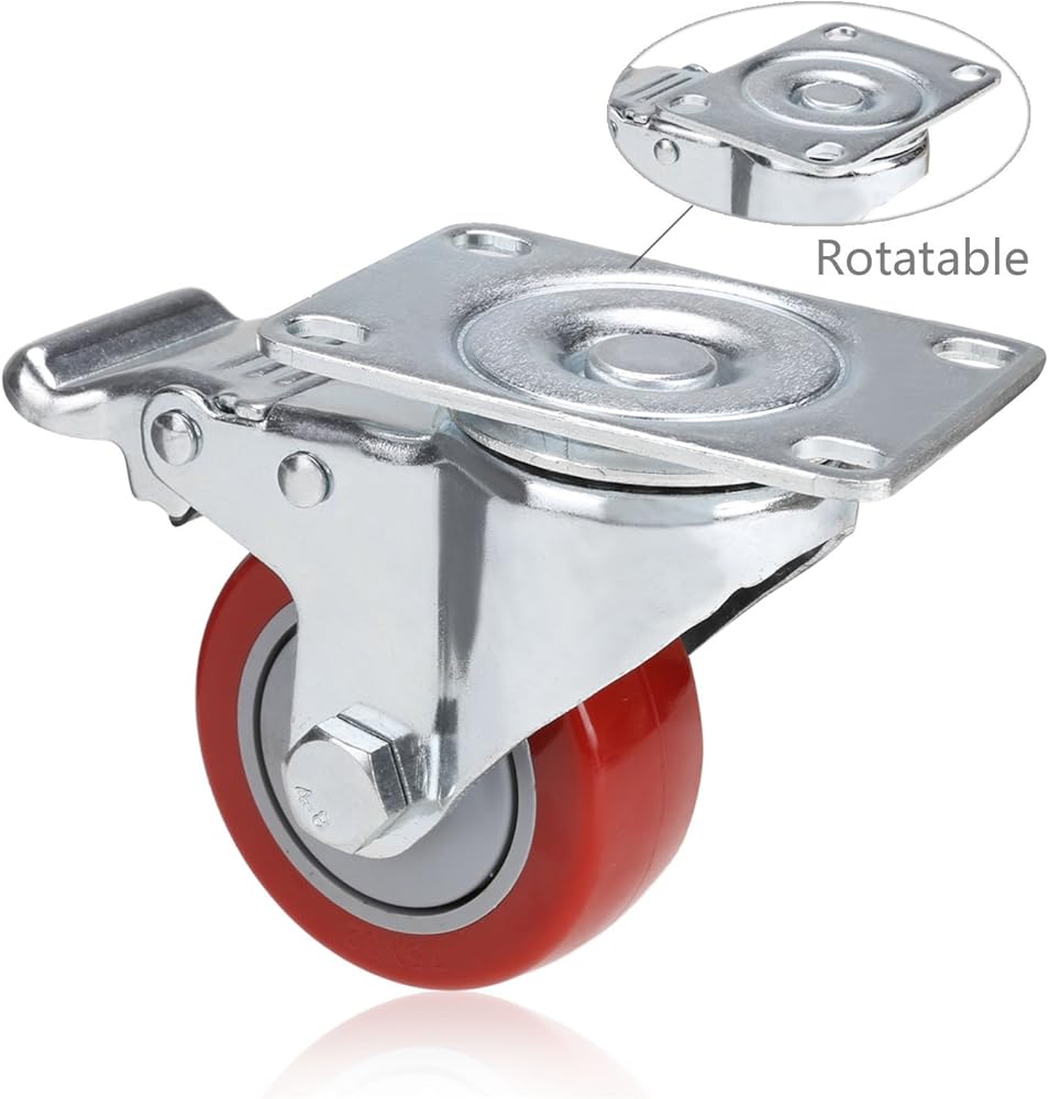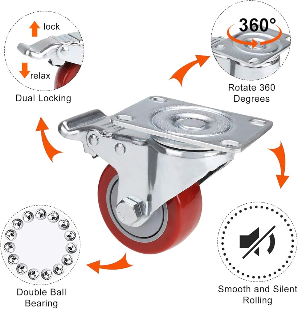 【مع قفل مزدوج】تتضمن مجموعة عجلات مكونة من 4 ومسامير مجانية، كل عجلة لها فرامل منفصلة. عجلات تحمل قابلة للقفل مع فرامل مزدوجة تعمل على قفل اتجاه اللوحة السفلية واتجاه العجلة للأمام. محامل كروية مزدوجة وقفل مزدوج لأقصى سعة تحميل وأمان.