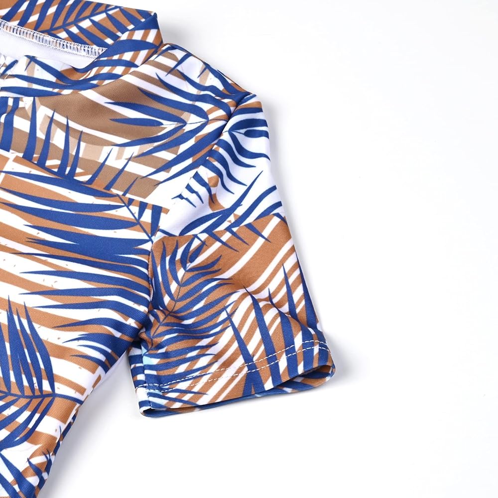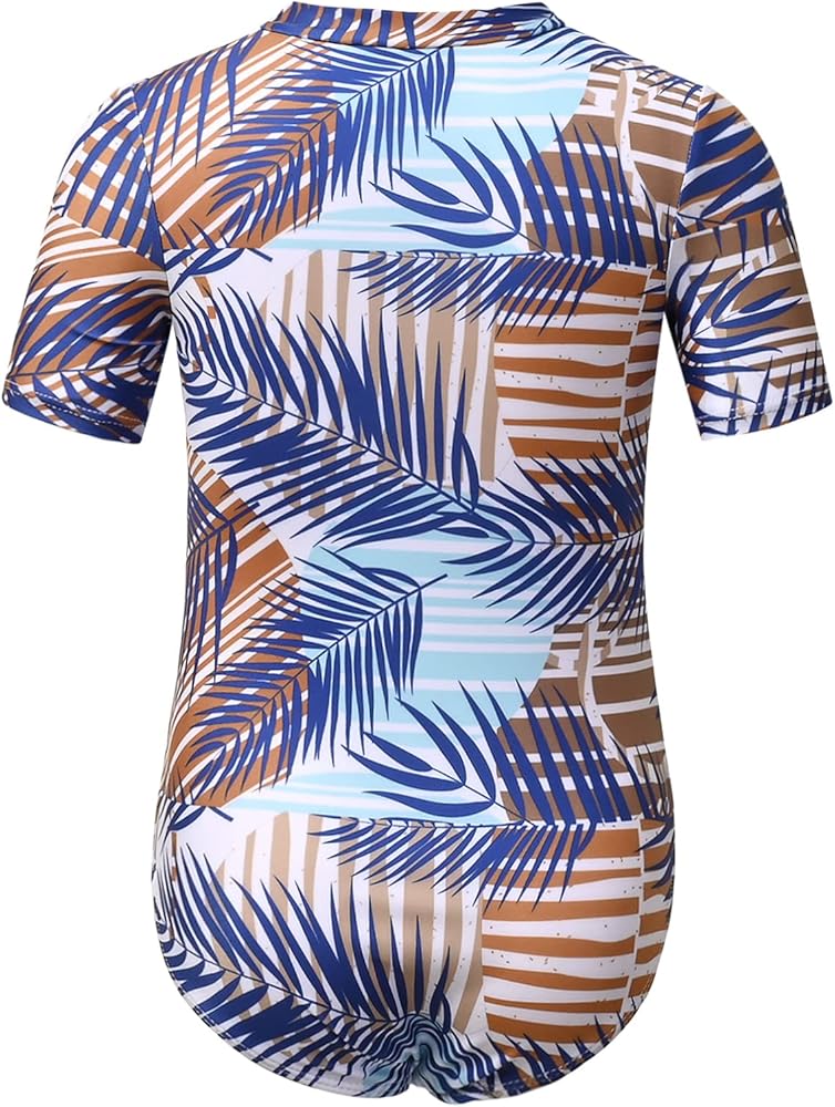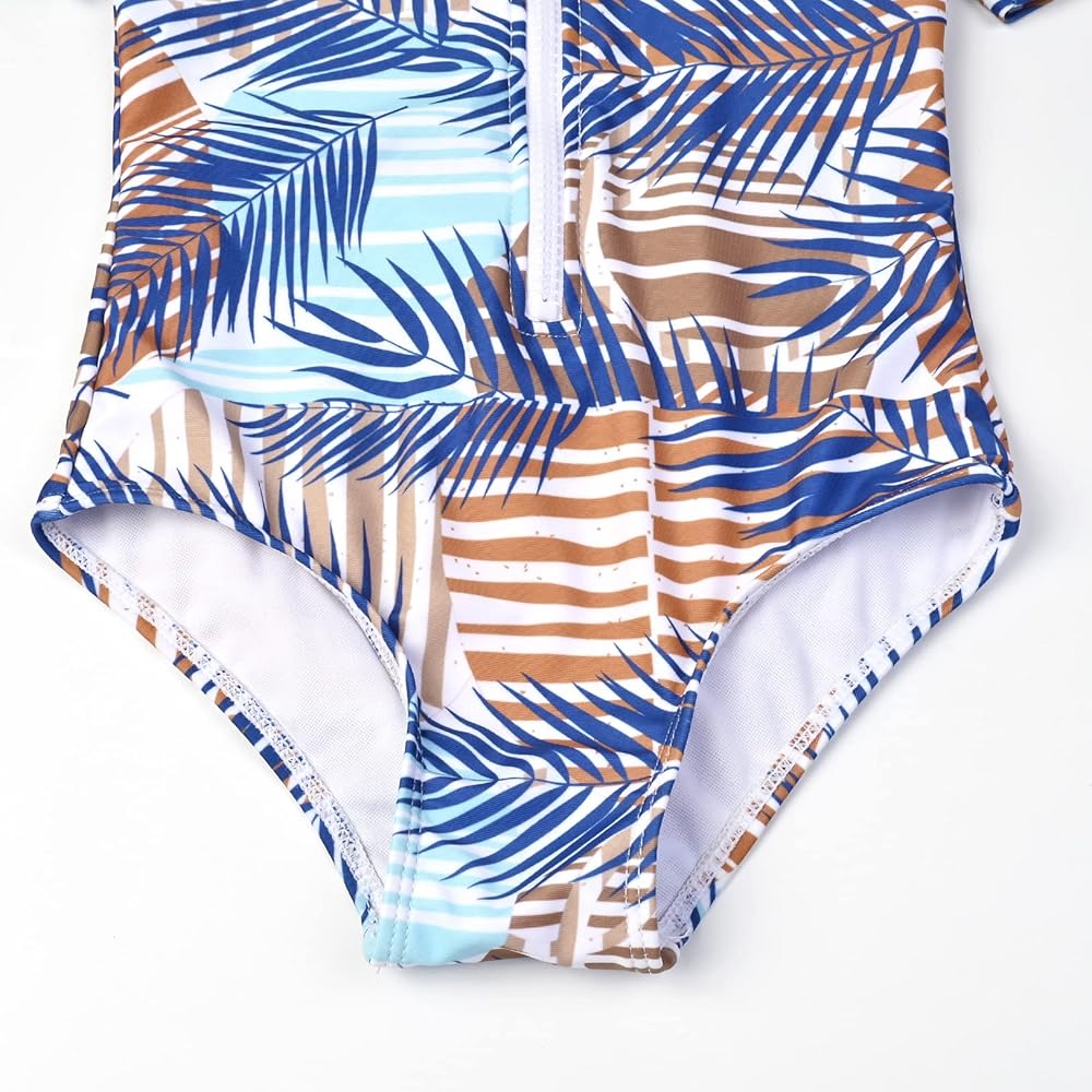 - واقي من الطفح الجلدي للفتيات، ملابس سباحة مطبوعة على شكل فلامينجو/حورية البحر/أزهار، إغلاق بسحاب، أكمام قصيرة، قماش مرن عالي في 4 اتجاهات
