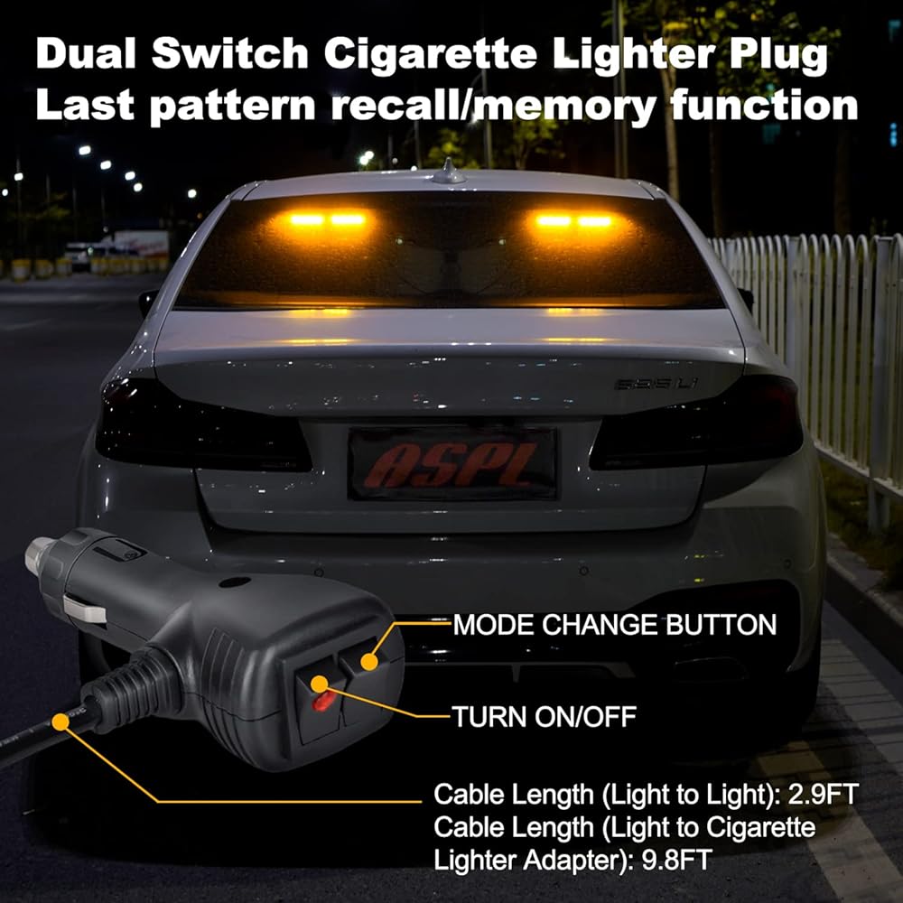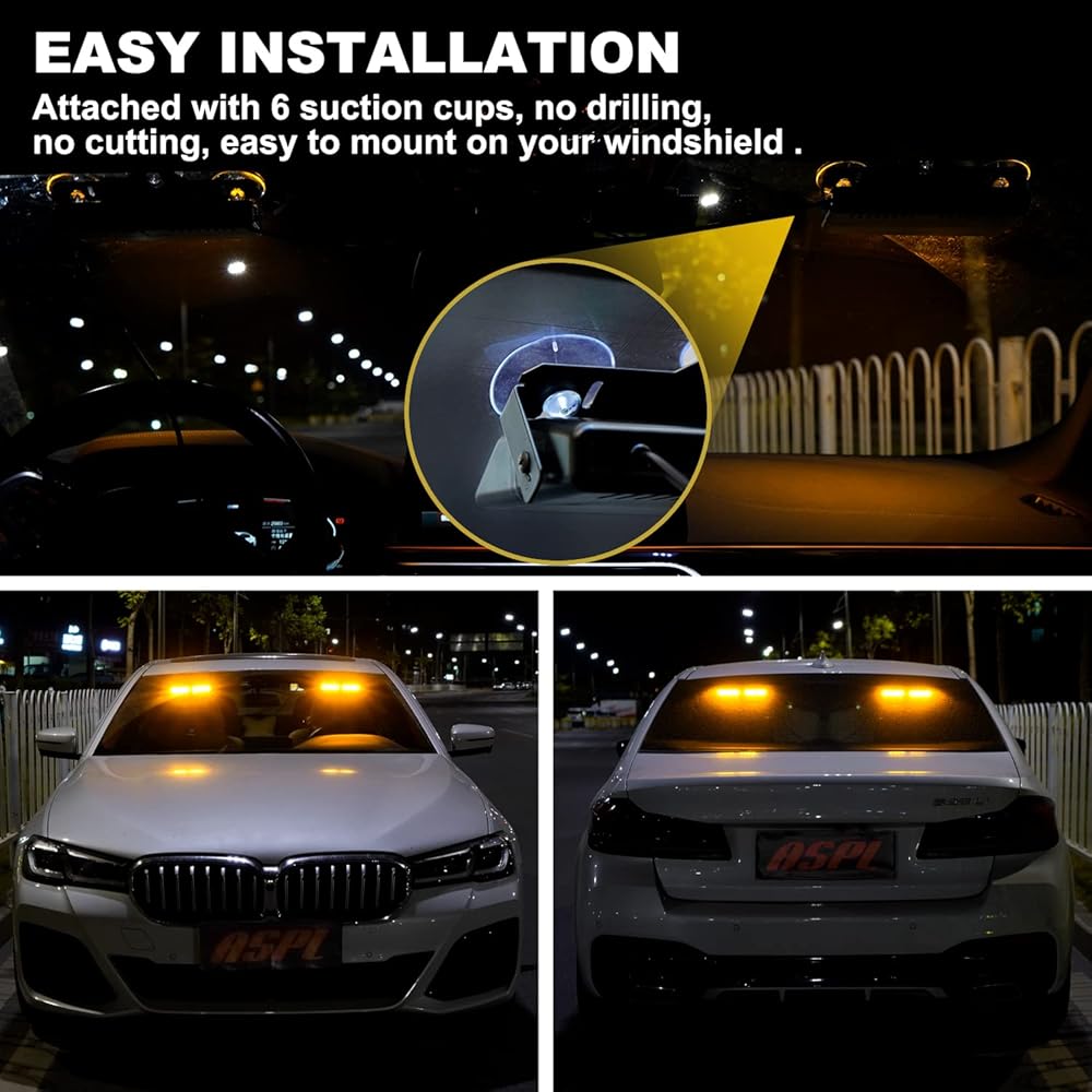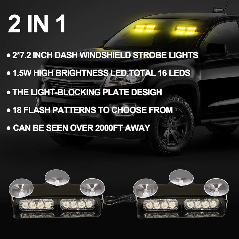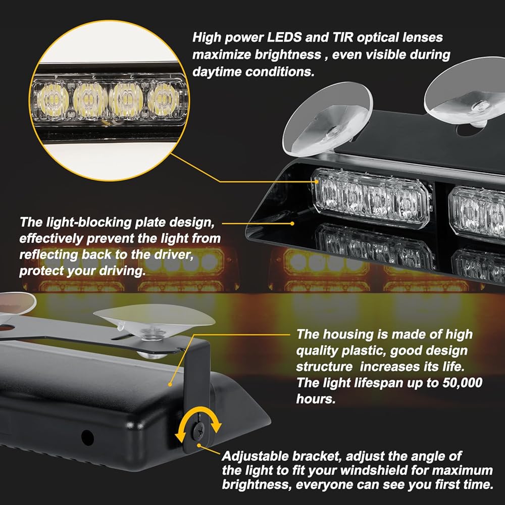 رؤية فائقة - يحتوي شريط الإضاءة القوية في حالات الطوارئ لمستشار حركة المرور على الزجاج الأمامي على 32 مصباح LED عالي السطوع للغاية للحصول على أقصى قدر من الإخراج 96 واط (3 وات/مصابيح LED)، مع عدسات بصرية واسعة، يوفر إخراج ضوء ساطع للغاية. أكثر سطوعًا بنسبة 200% من ضوء LED القياسي، ساطعًا حتى في النهار.