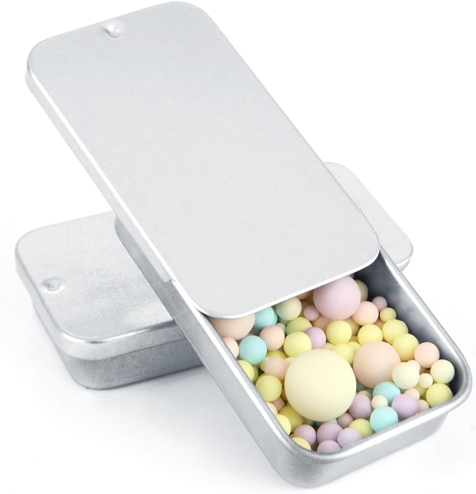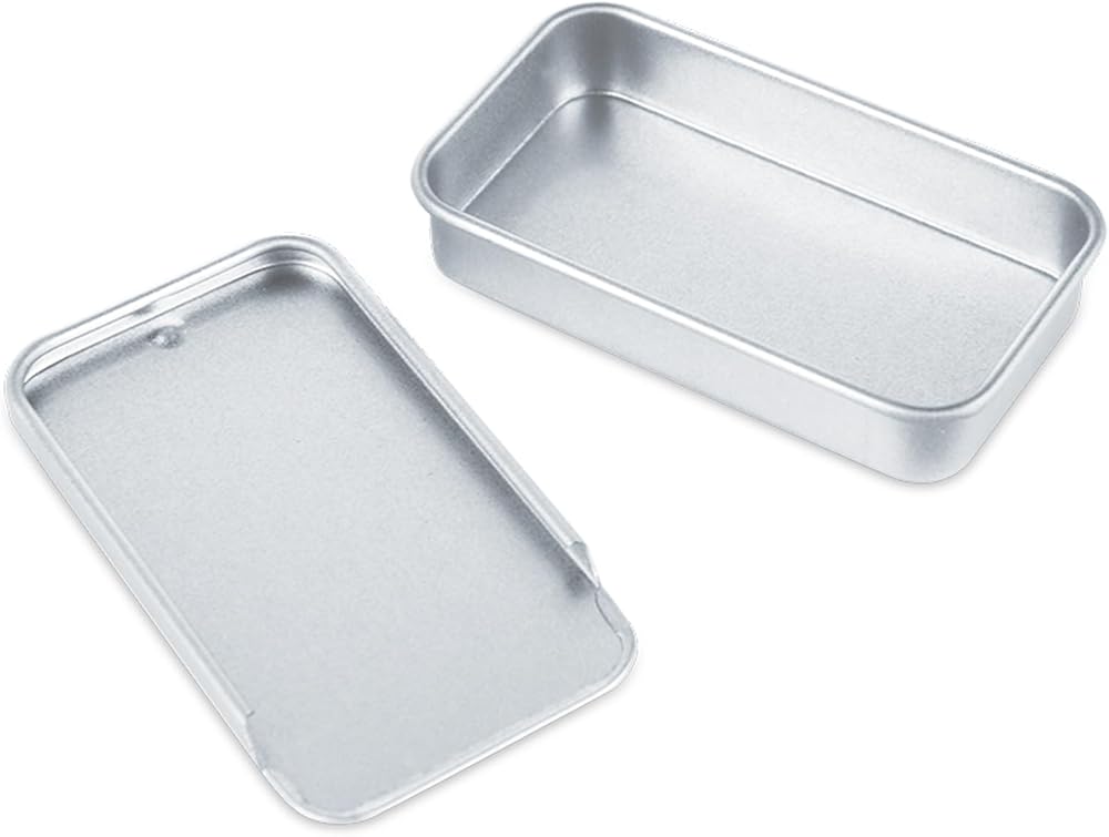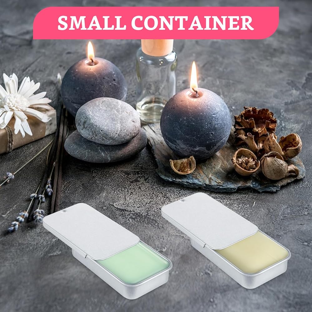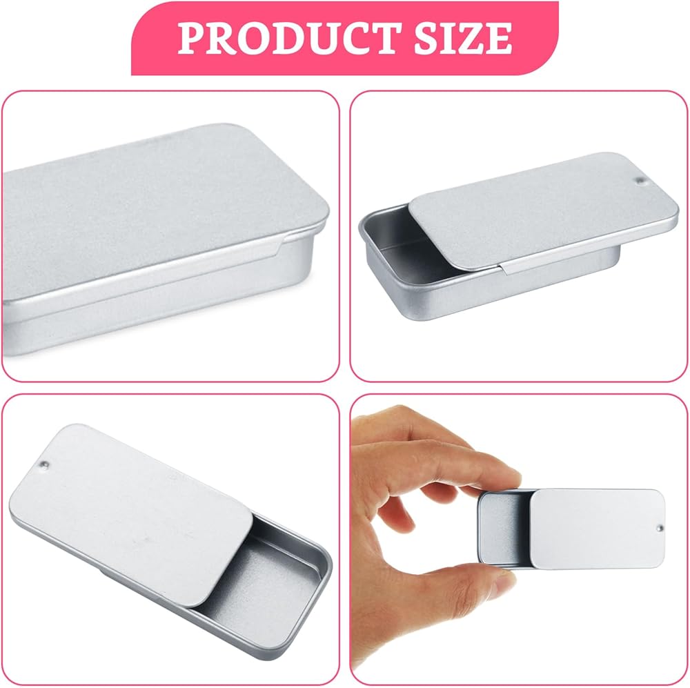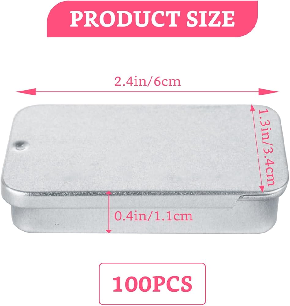 100 Pack Metal Slide Top Tin Containers, 0.5 oz Mini Metal Tin Containers, Rectangle Metal Tin Box with Slide Lids for Lip Balm Jewelry Crafts Pills,3.4x 2.4 x 0.4 Inch, Silver