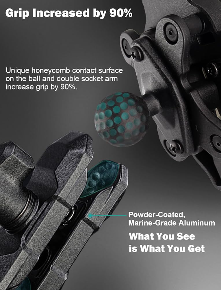 • قوي وآمن - يضمن ذراع المقبس المزدوج المصنوع من الألومنيوم وقاعدة التثبيت اتصالاً قويًا. يضمن الحامل المركب عالي الأداء PA66+GF30 المتانة مع تقليل وزن الحامل.