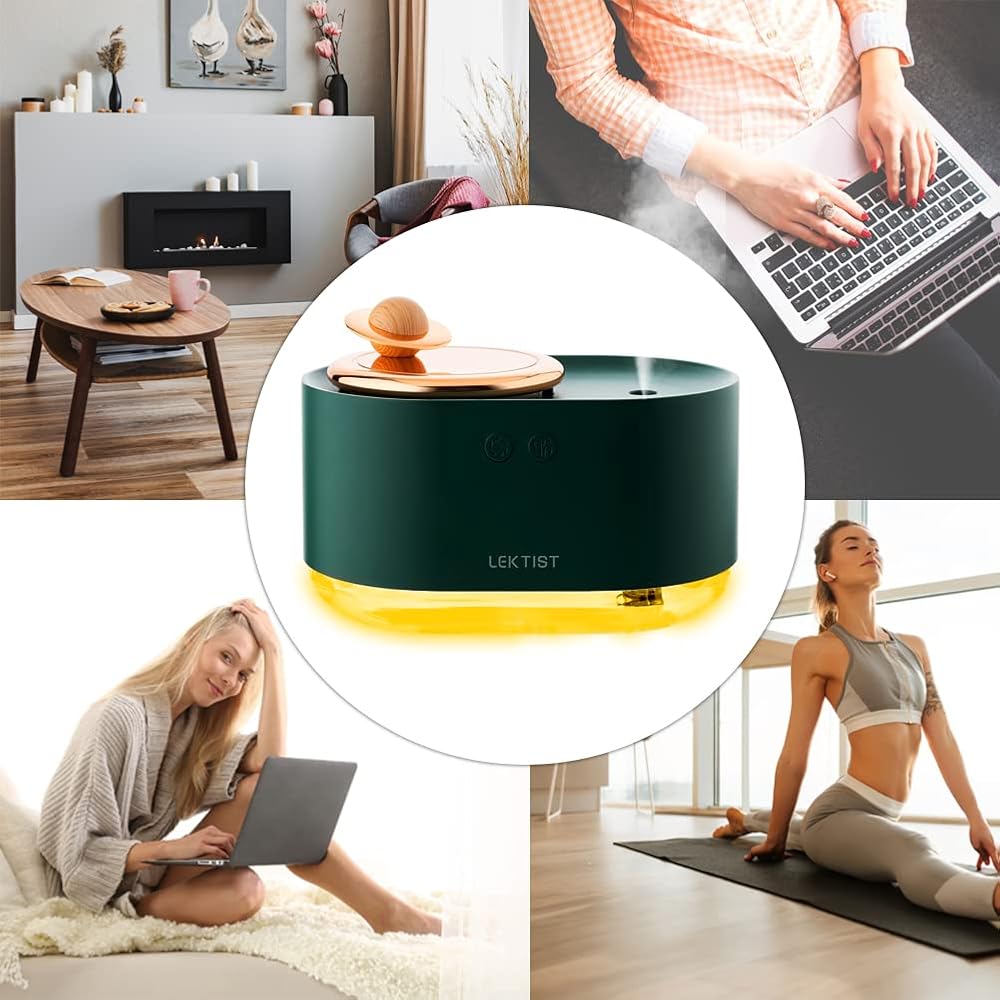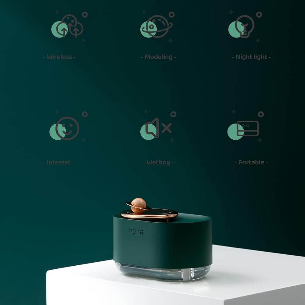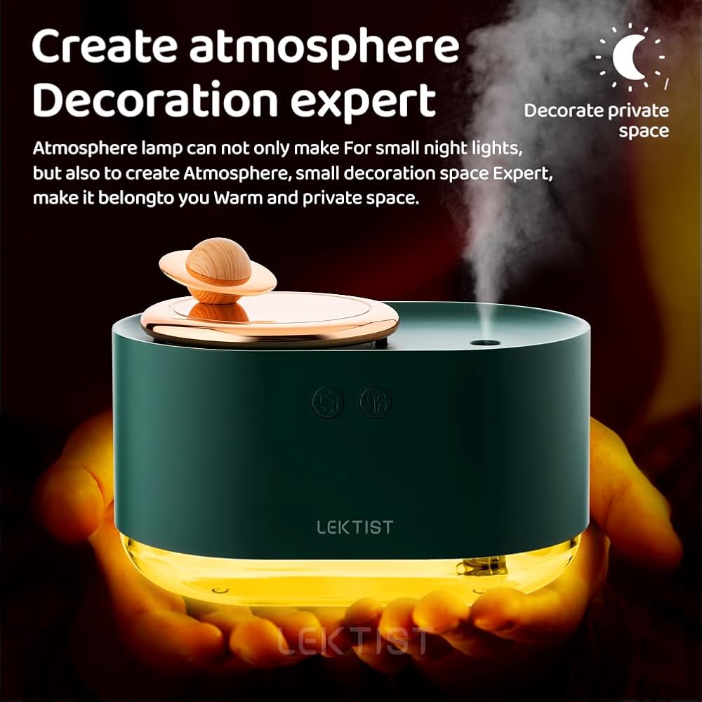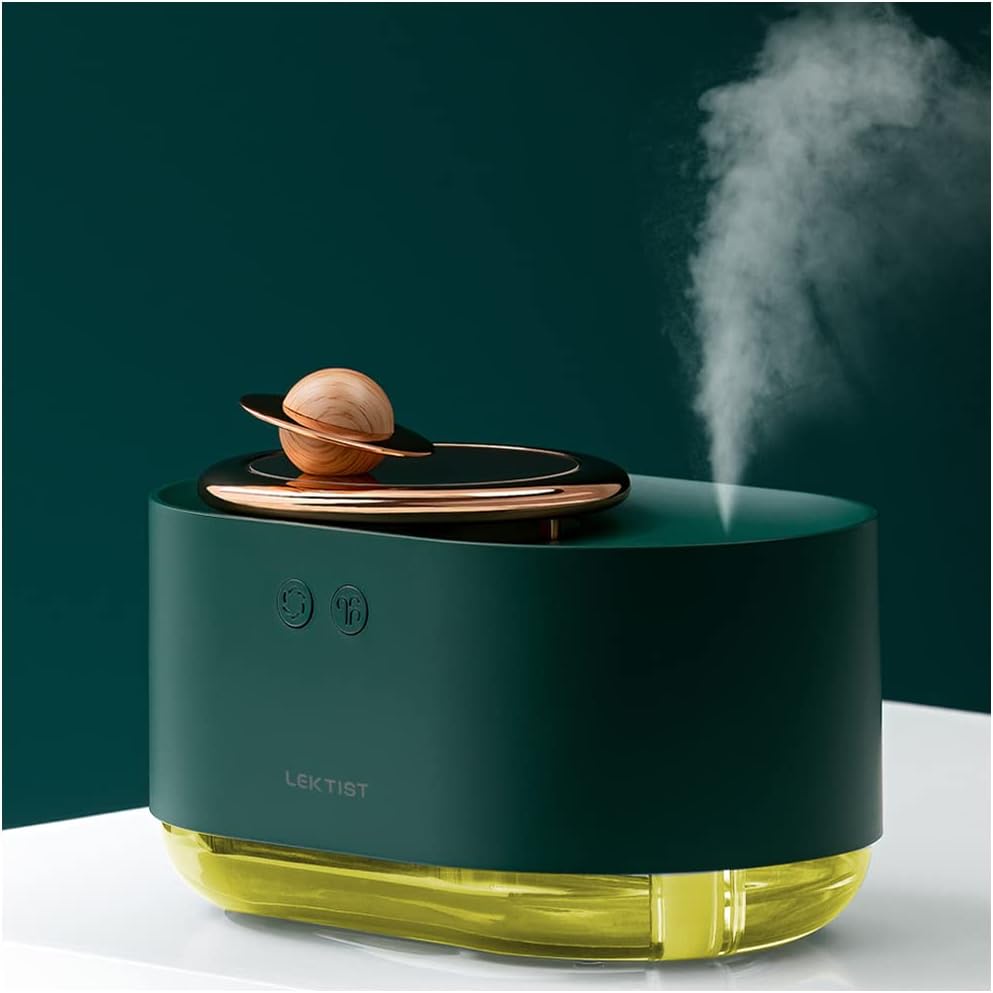 مرطب رذاذ صغير من ليكتيست مع ناشر ومرطبات إضاءة ليلية لغرفة النوم، 300 مل، مرطب كوكبي دوار لسطح مكتب غرفة النوم، والزخارف المزخرفة، واليوجا، والمكتب، والمنتجعات الصحية (أخضر)