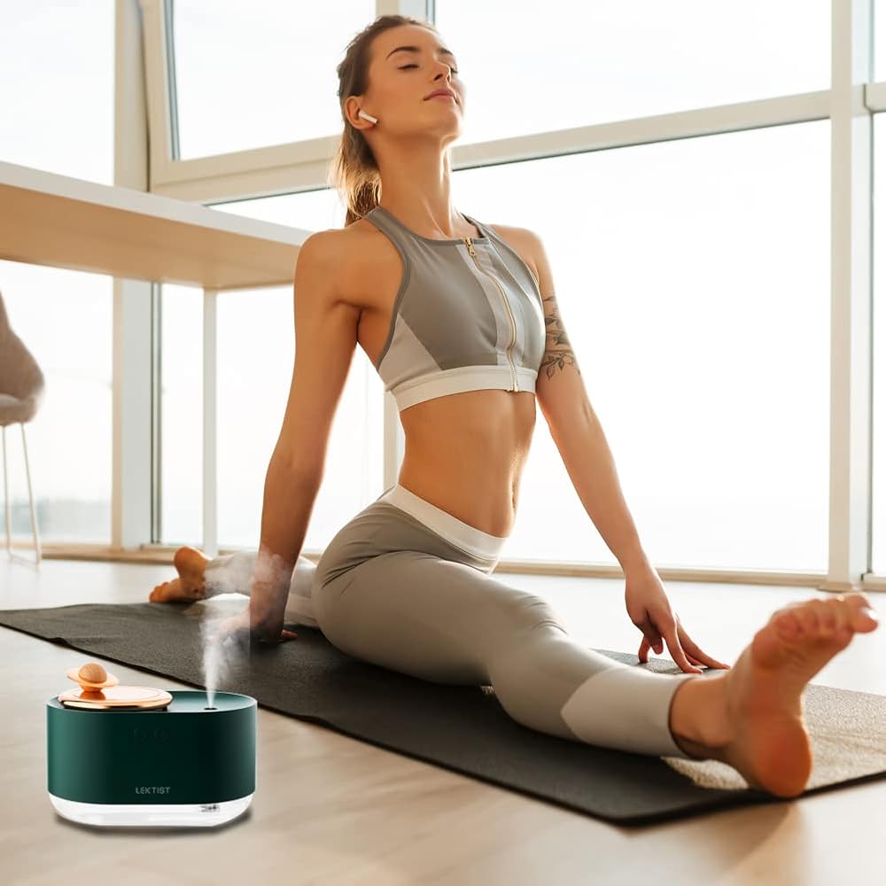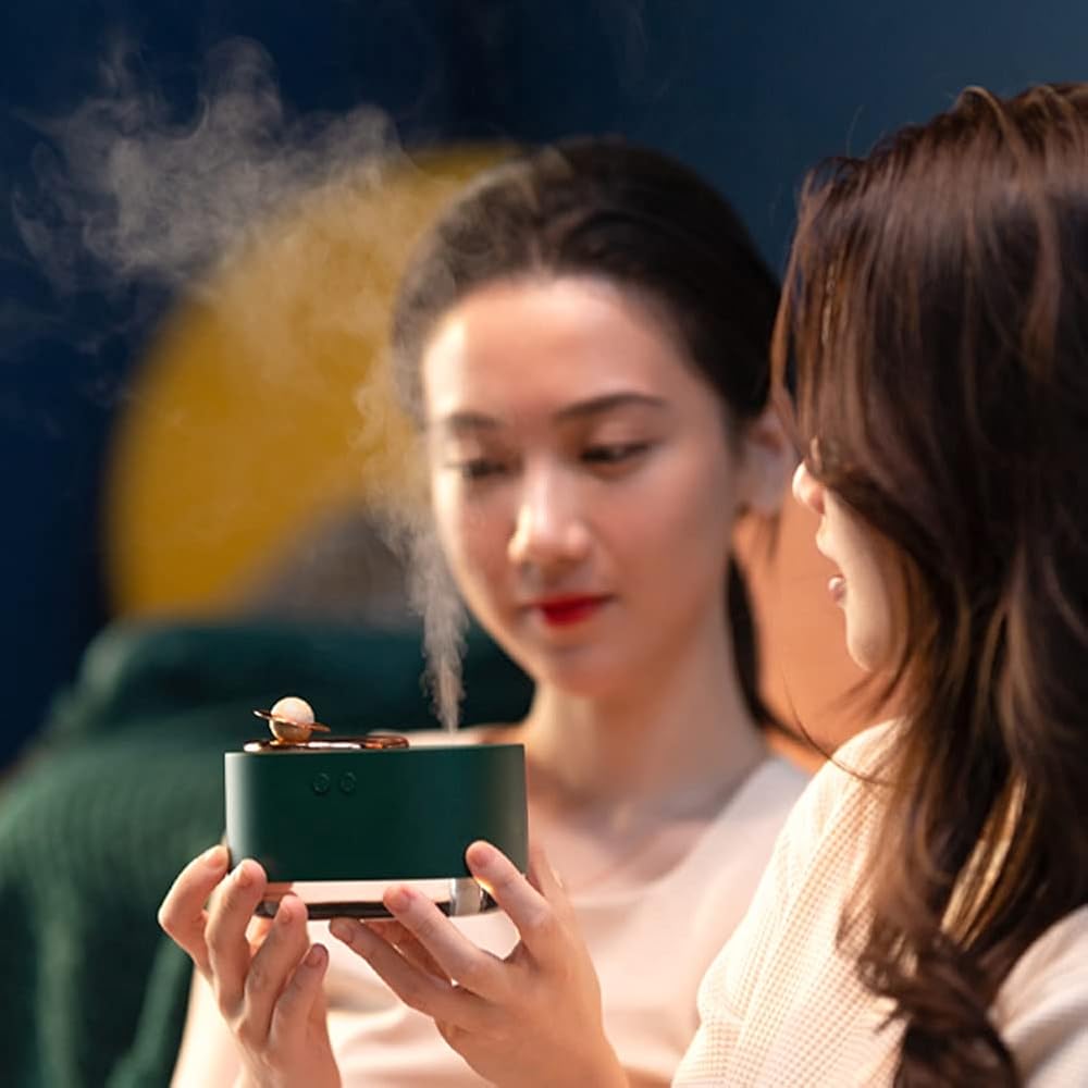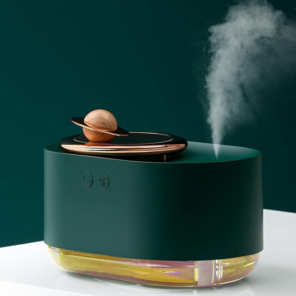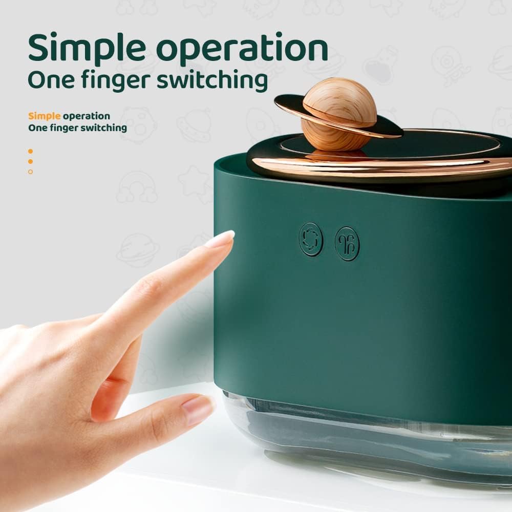مرطب رذاذ صغير من ليكتيست مع ناشر ومرطبات إضاءة ليلية لغرفة النوم، 300 مل، مرطب كوكبي دوار لسطح مكتب غرفة النوم، والزخارف المزخرفة، واليوجا، والمكتب، والمنتجعات الصحية (أخضر)