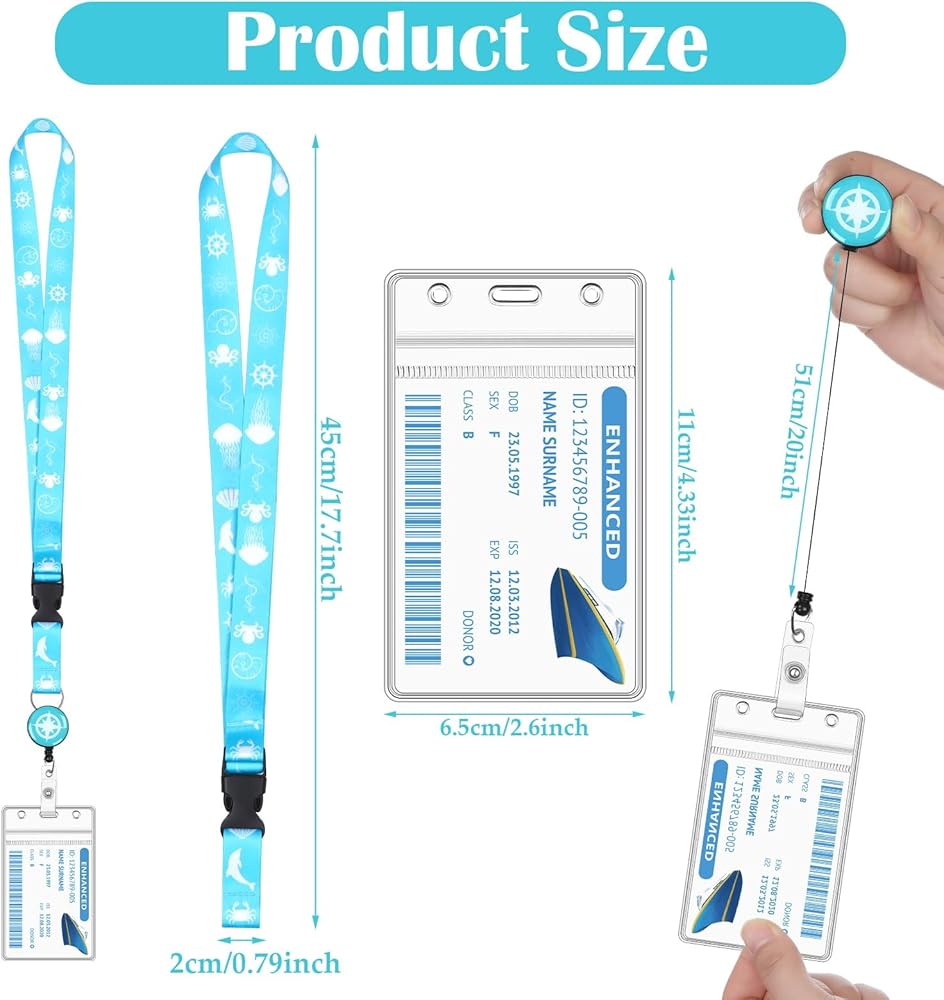 الحجم المناسب: تتميز حاملات الهوية المقاومة للماء بأبعاد داخلية تبلغ 2.5 × 3.5 بوصة وتناسب بطاقات السفن السياحية أو بطاقات بحجم بطاقة الائتمان أو حشوات الشارة. يبلغ طول الحبل 19 بوصة، وبطاقات الأمتعة تقريبًا. 5.9 × 3.5 بوصة