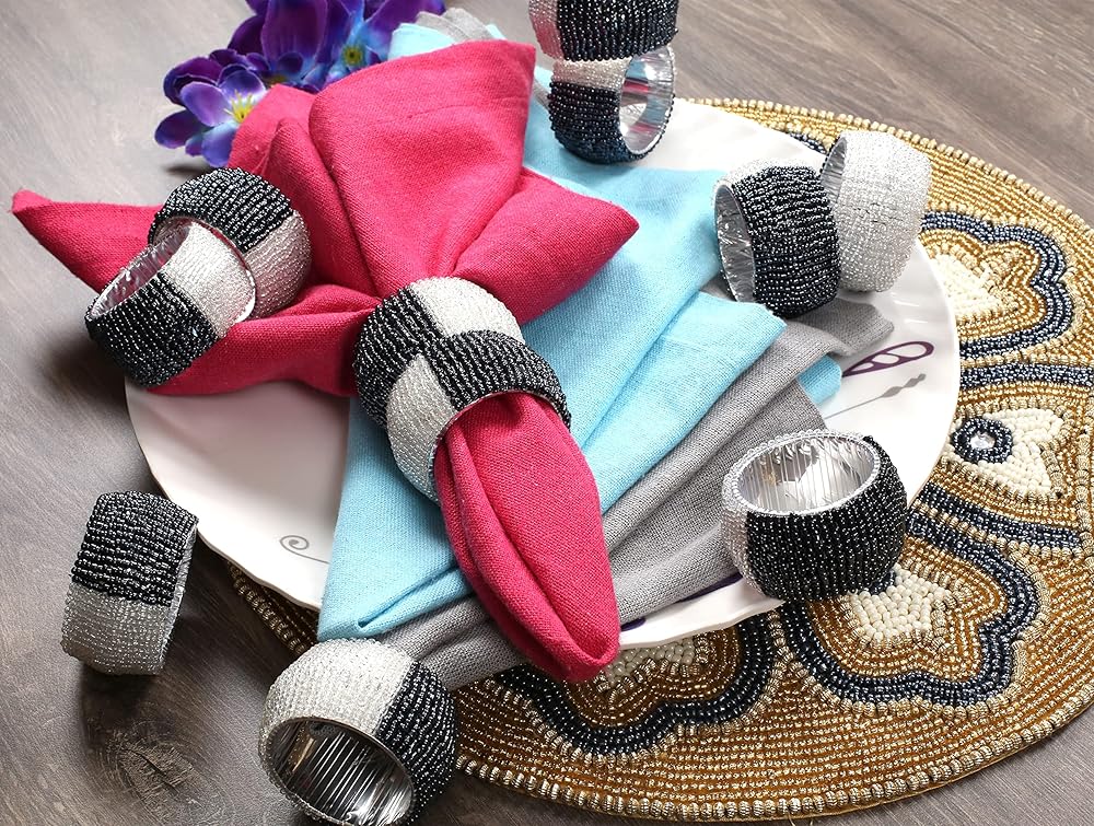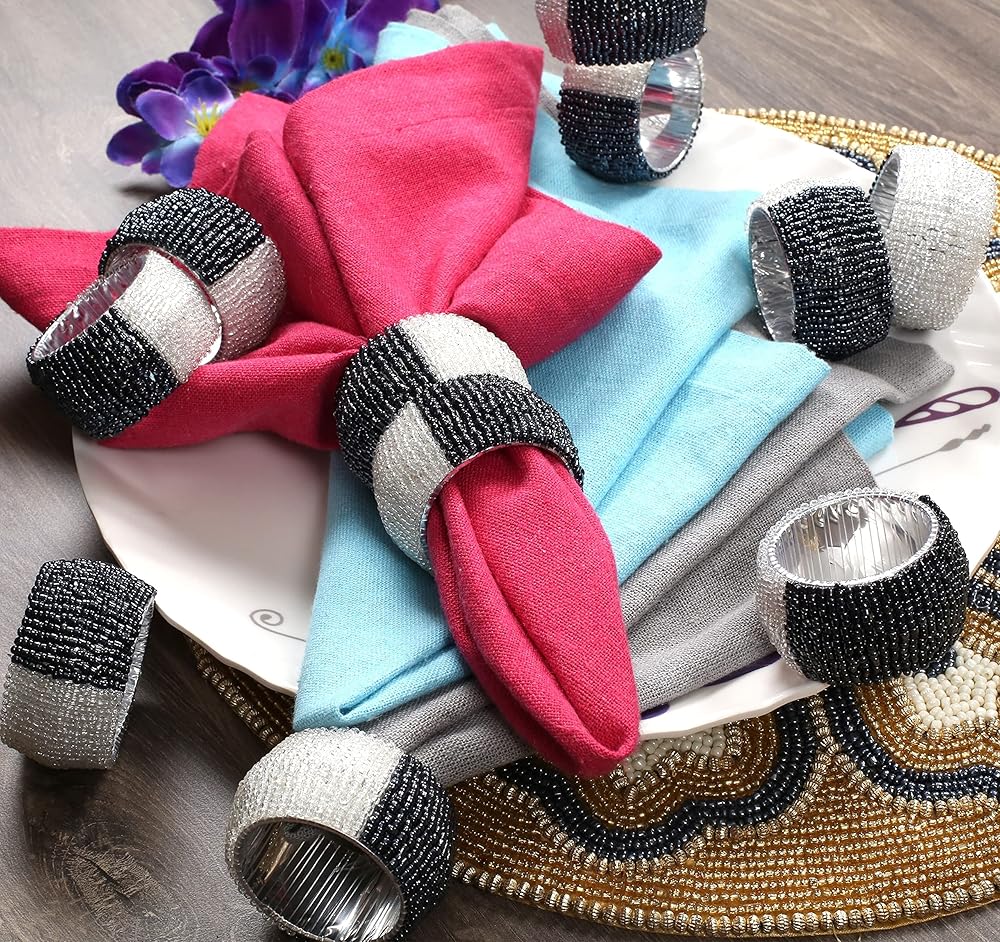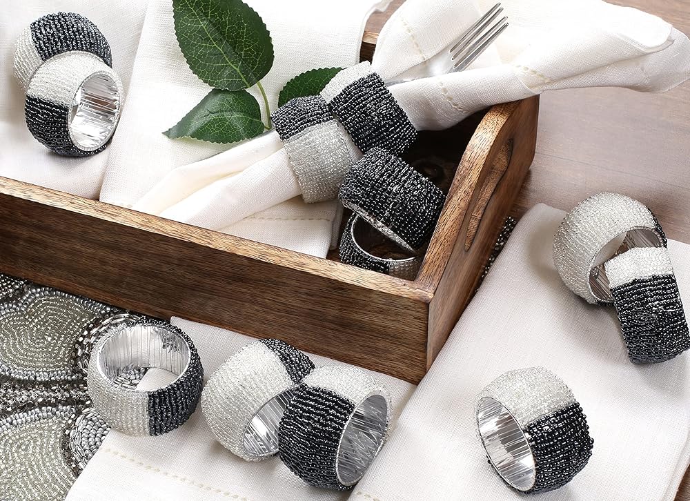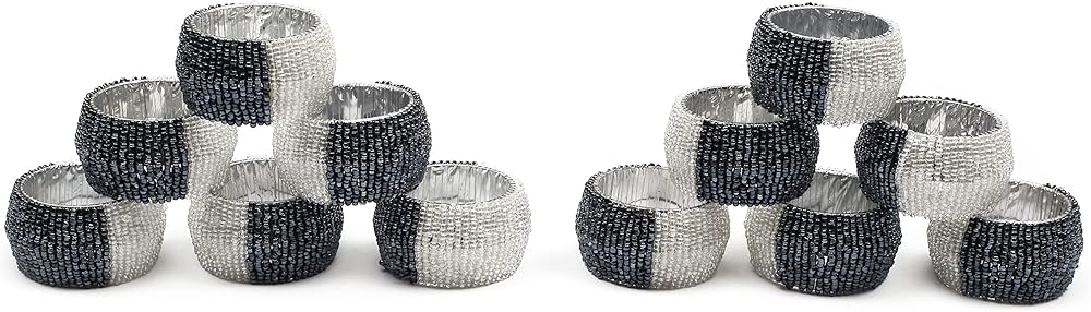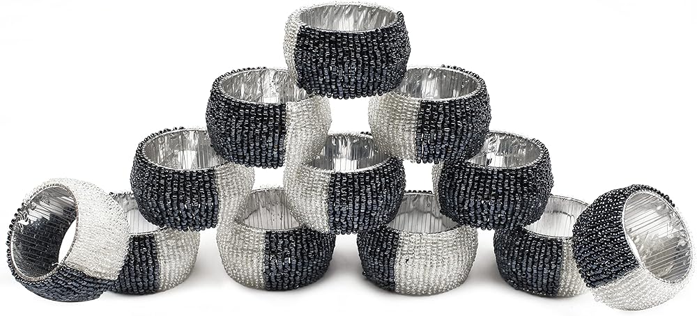 المحتويات: تحتوي العبوة على 12 قطعة من حلقات المناديل ذات الخرز الزجاجي.