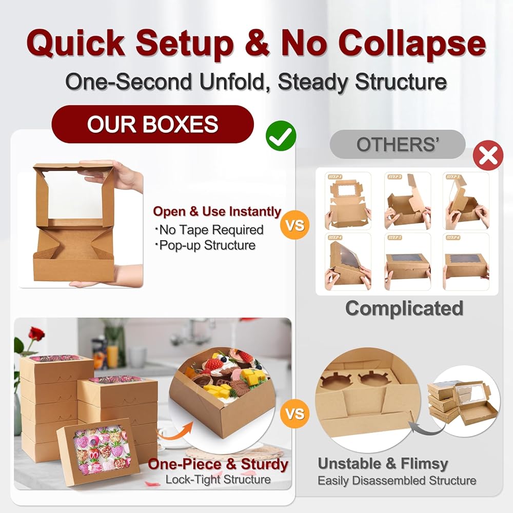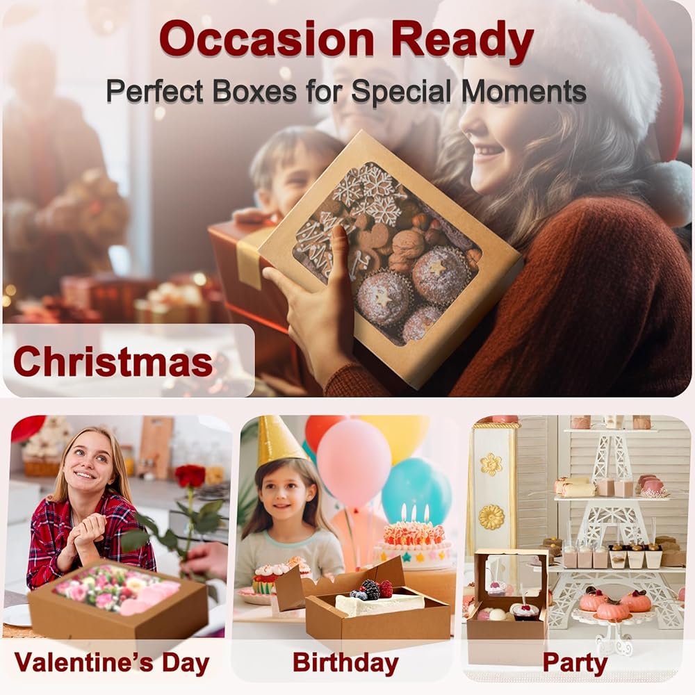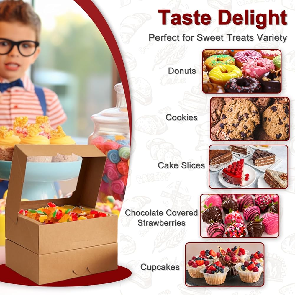 ارفع مستوى عرضك الحلو: تم تصميم صناديق المخبوزات لدينا لتكون قابلة للنقل بسهولة، مما يجعلها مثالية لعرض ومشاركة مجموعة متنوعة من الحلويات والحلويات في أي مناسبة. تسمح النافذة الشفافة لموهبتك في الطهي بالتألق، مما يزيد من المظهر البصري لحلوياتك - وهي مثالية لهدايا عيد الميلاد والحلويات أثناء التنقل.